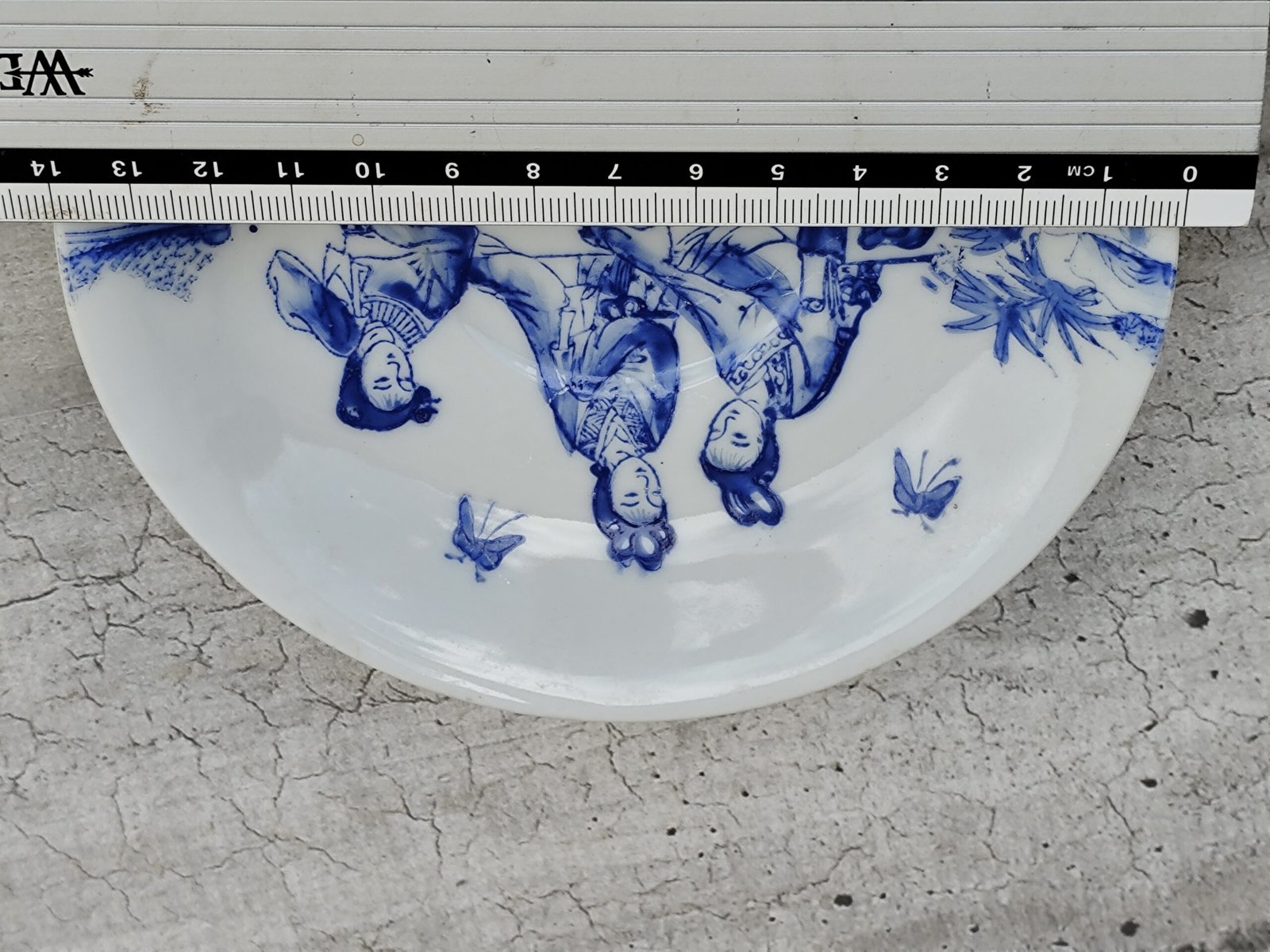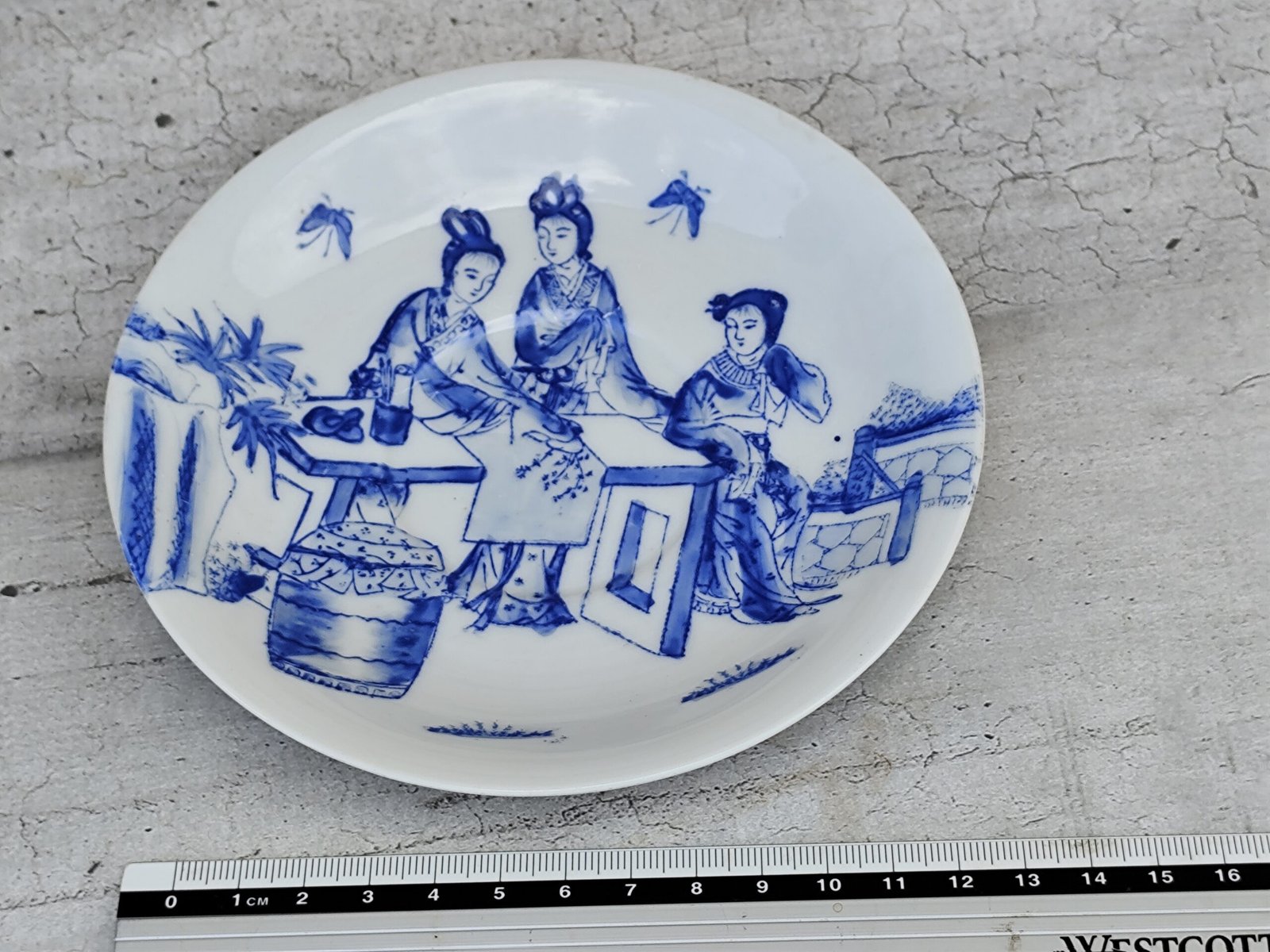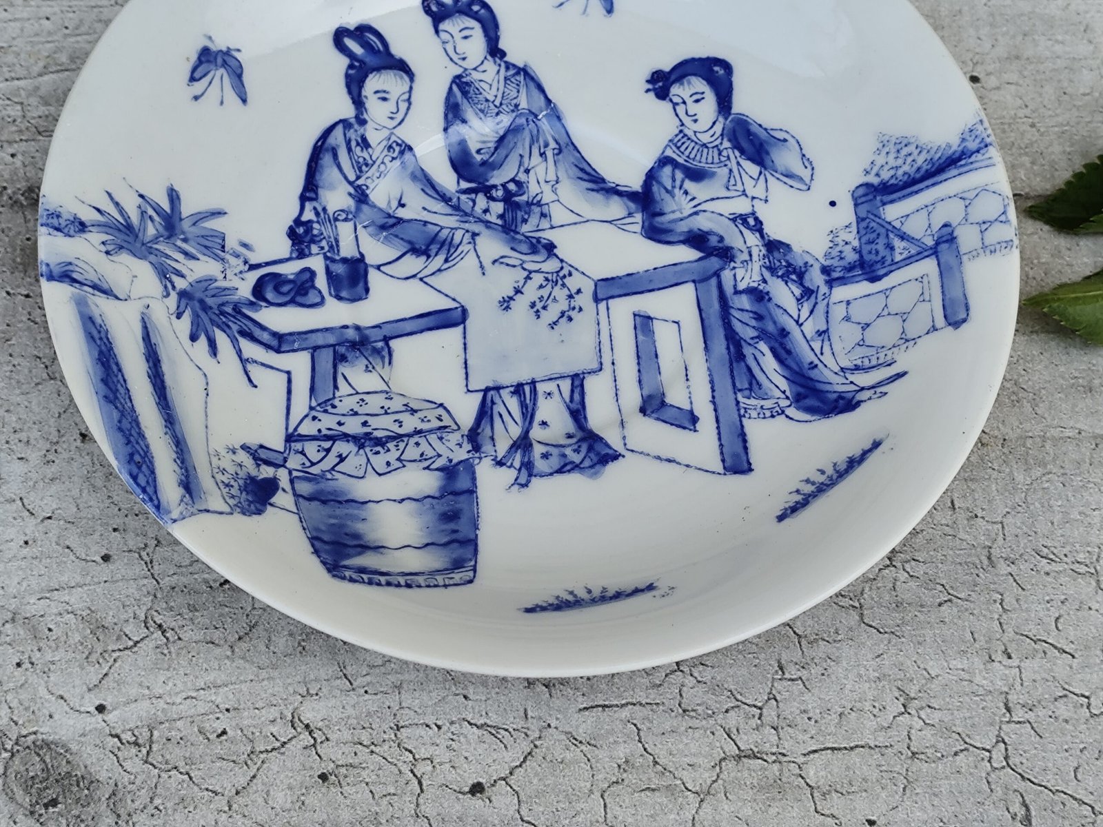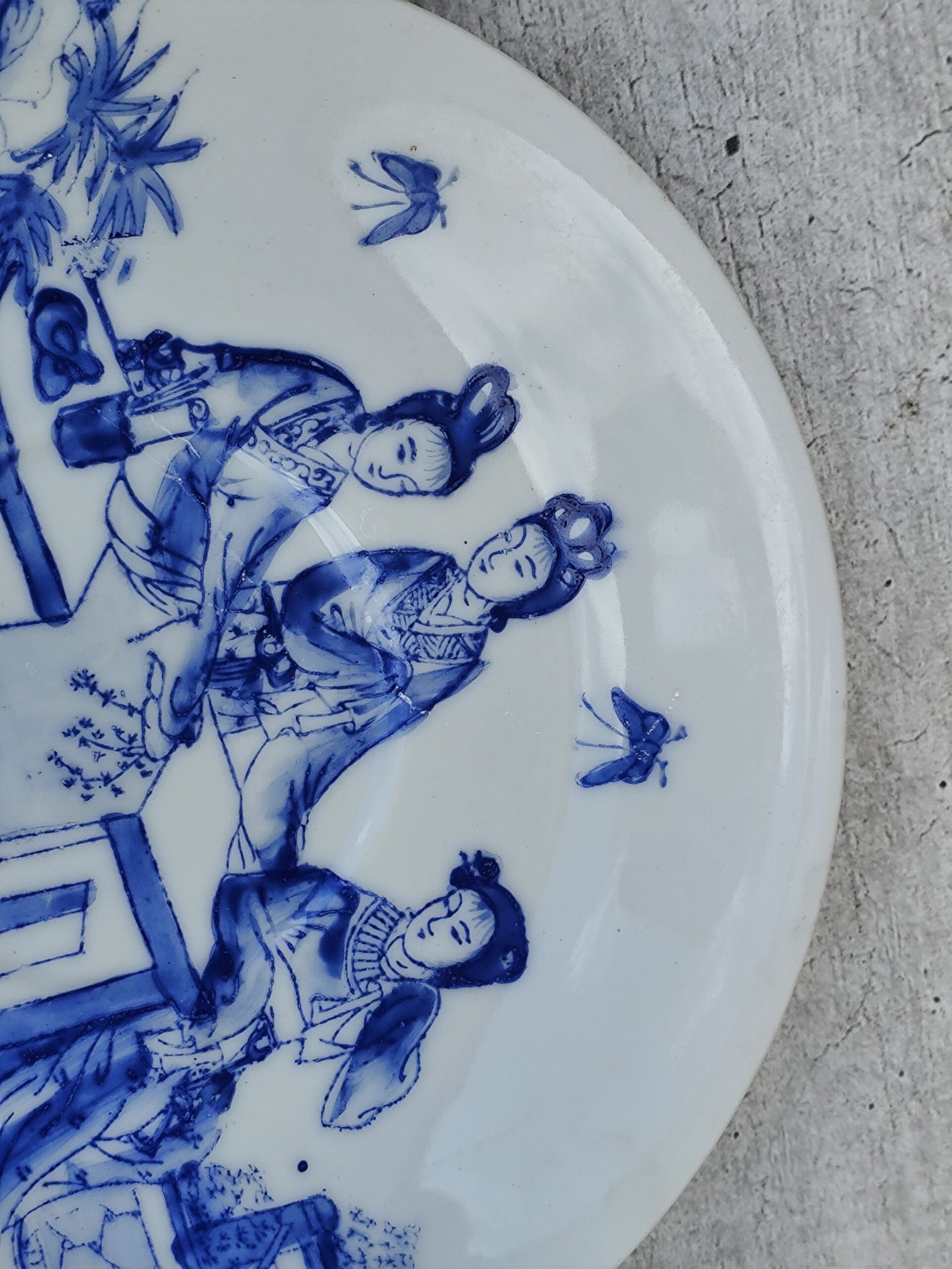 Assiette décorative chinoise – Scène bleue & blanche – Porcelaine ancienne.