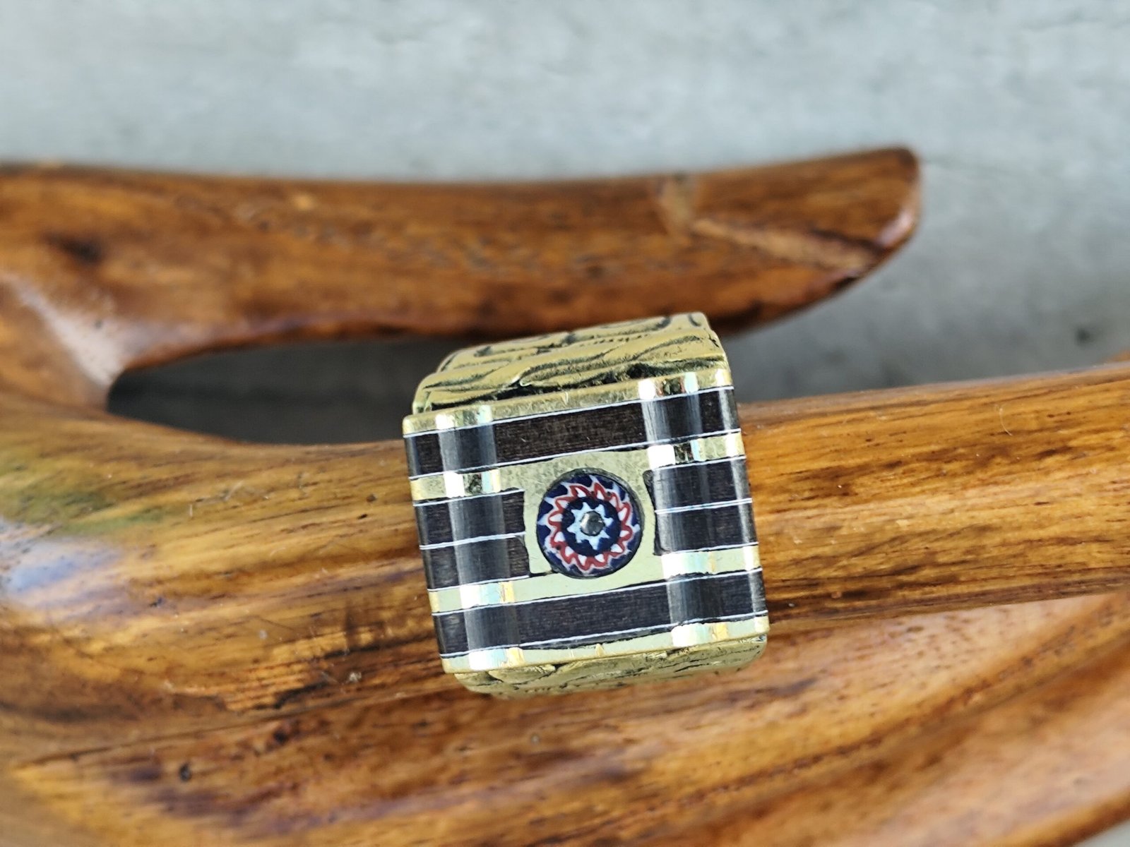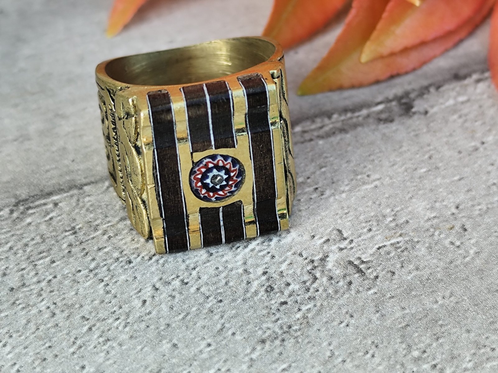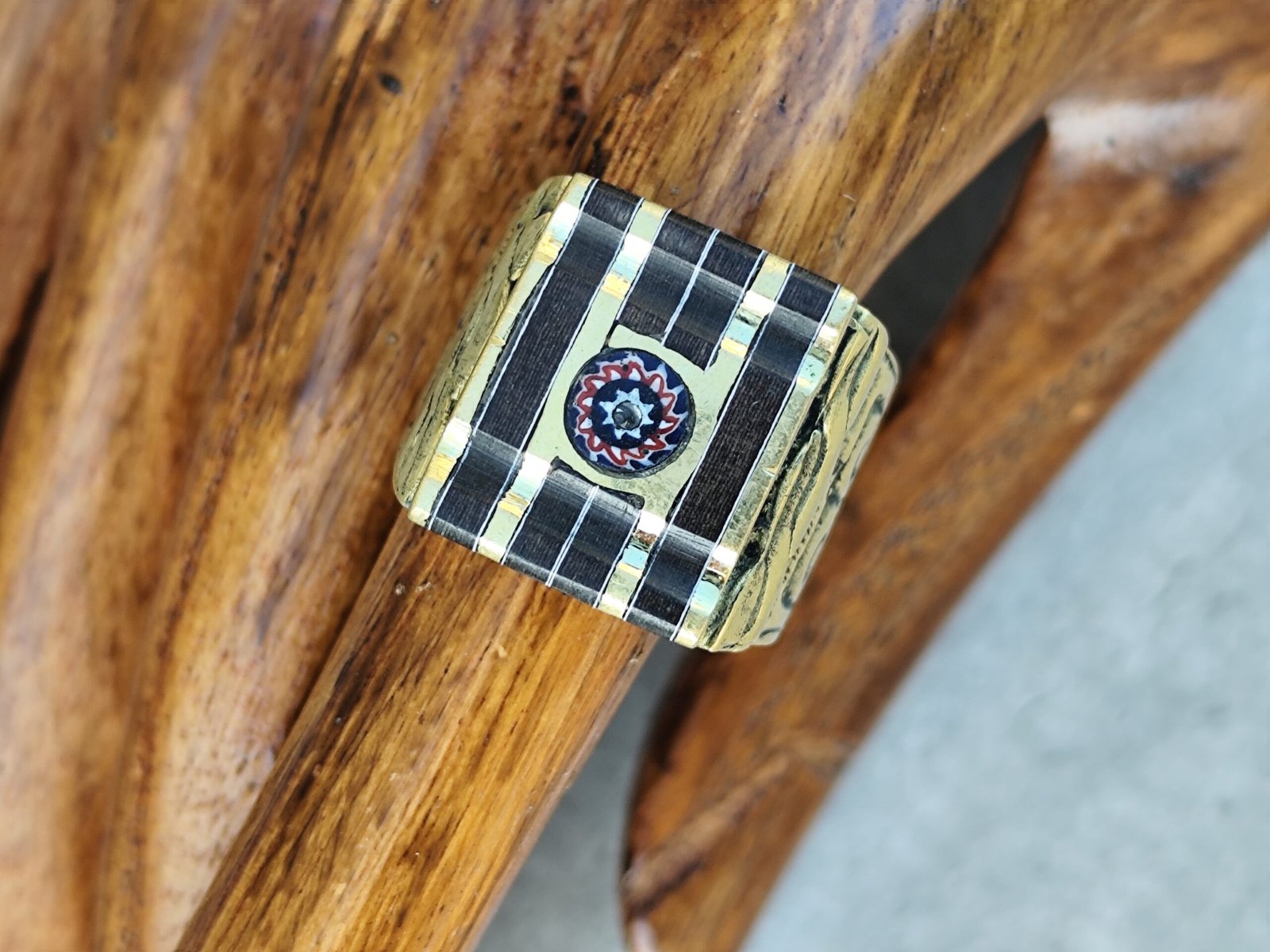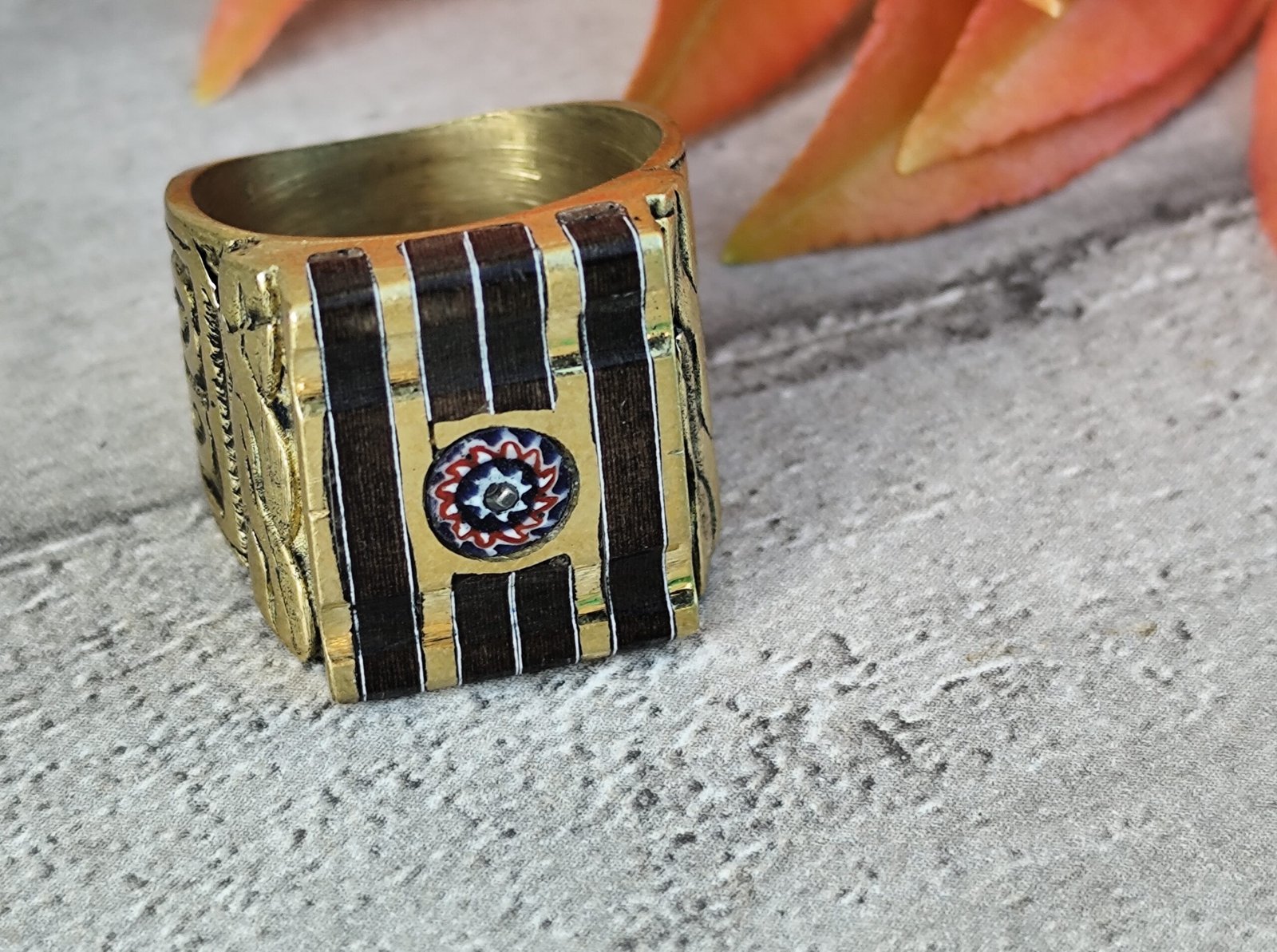 Bague Berbère en Millefiori, Bois d’Ébène & Laiton – Artisanat Marocain.