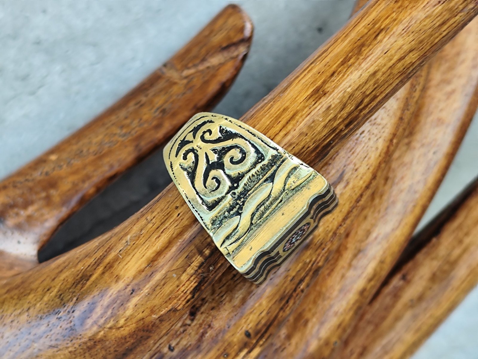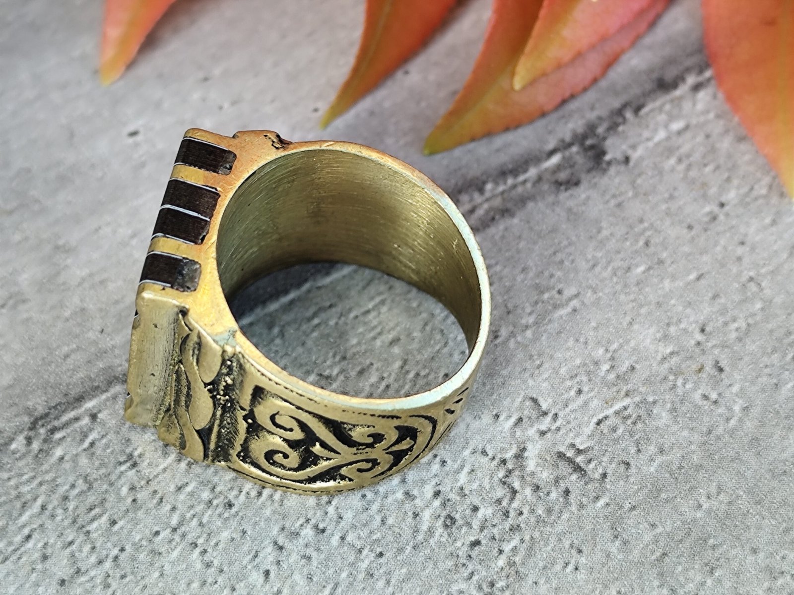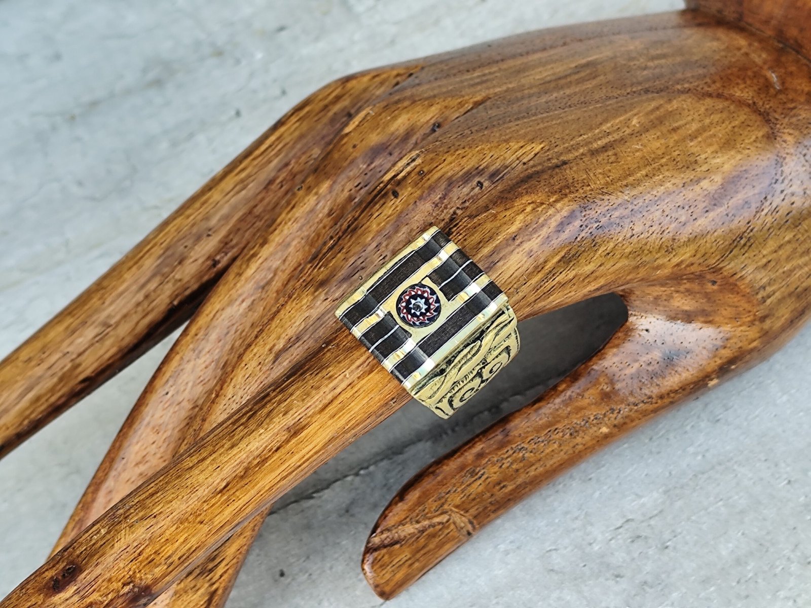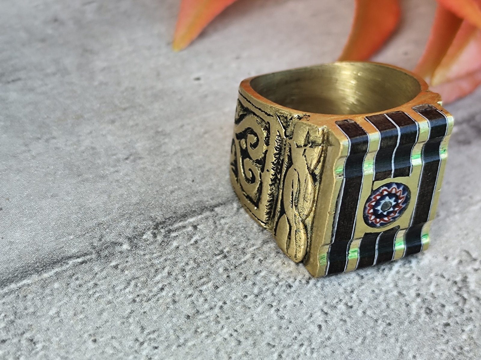 Bague Berbère en Millefiori, Bois d’Ébène & Laiton – Artisanat Marocain.