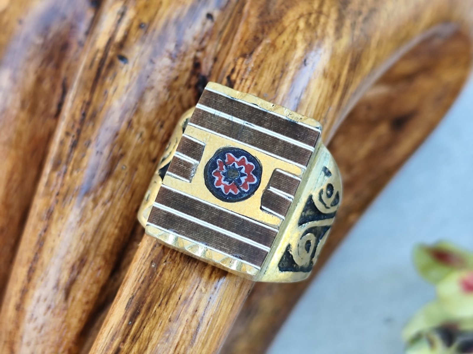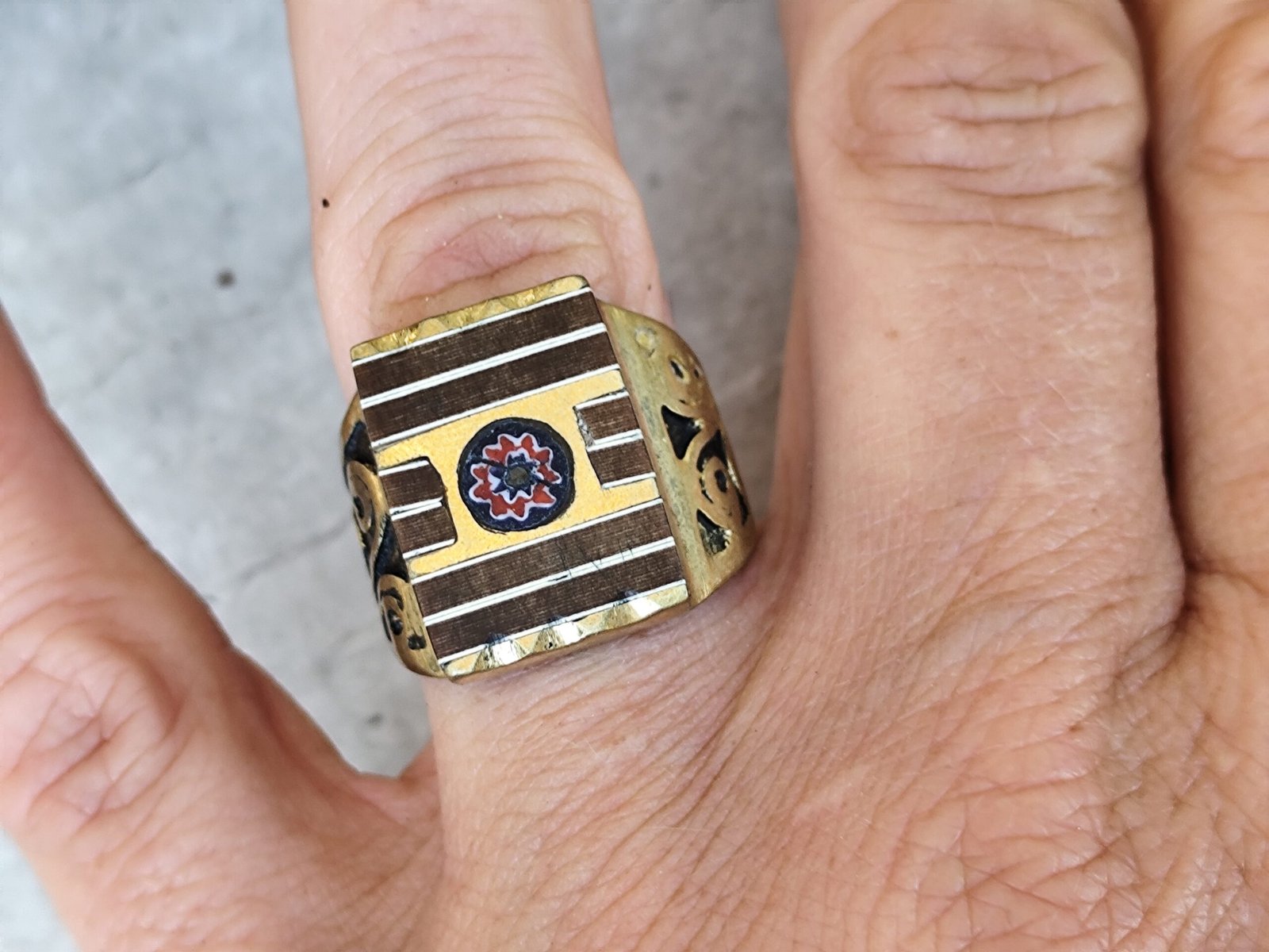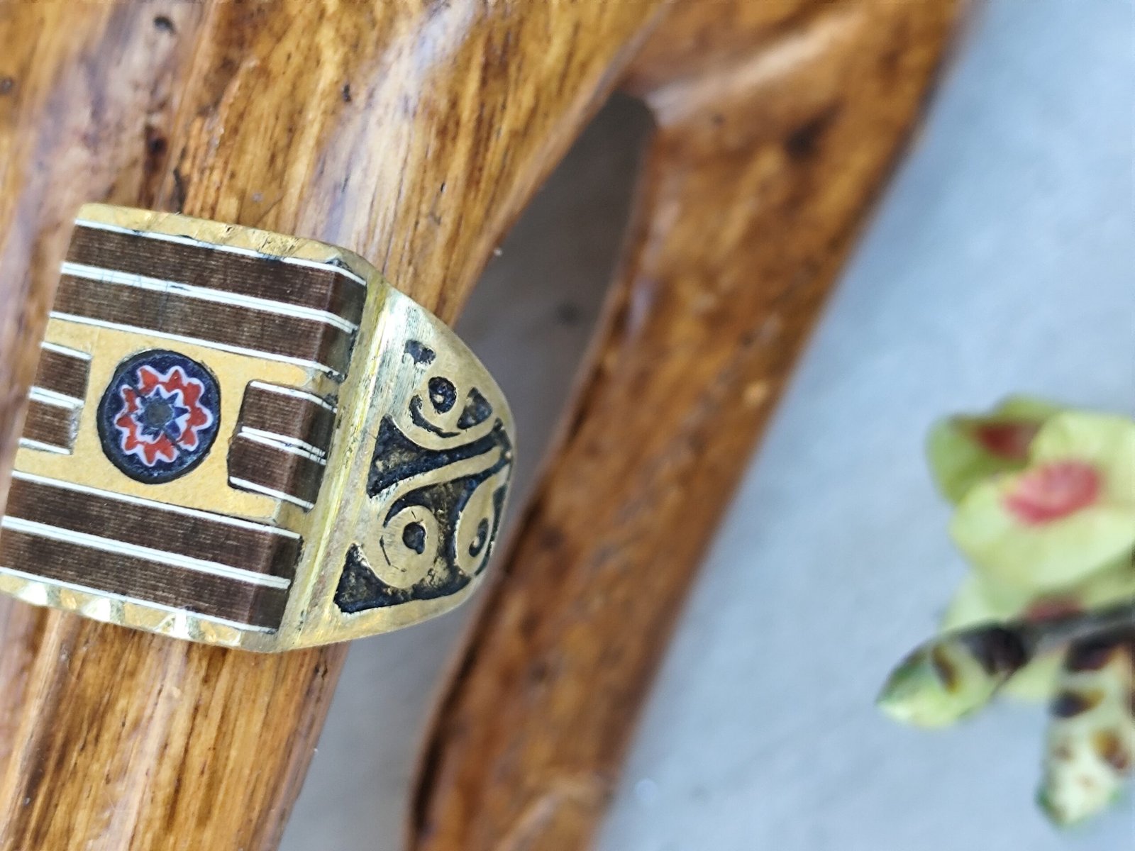 Bague marocaine millefiori – laiton & bois d’ébène – artisanat du Maroc.