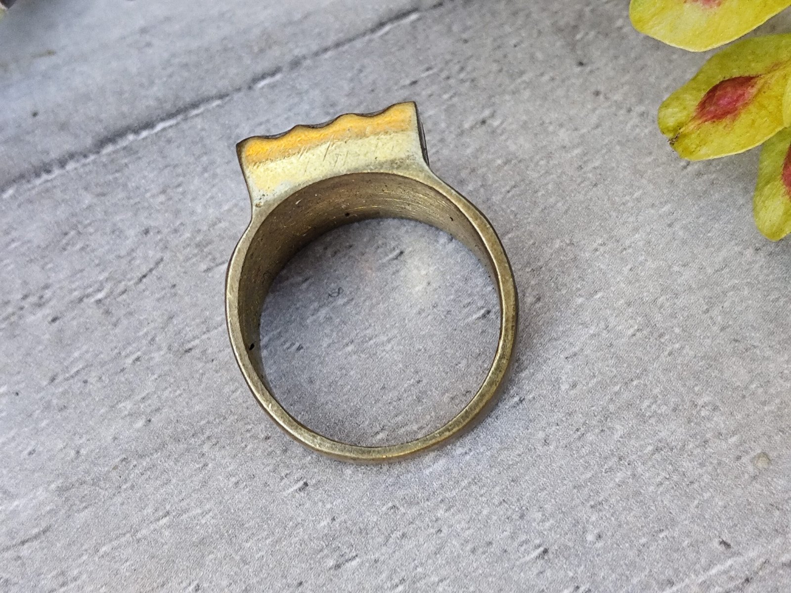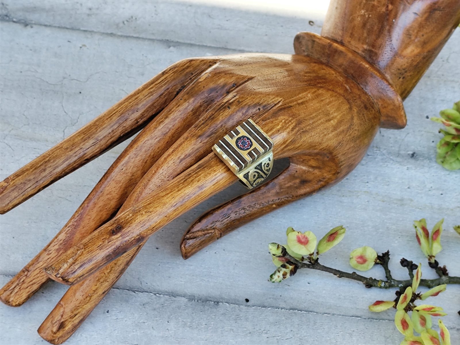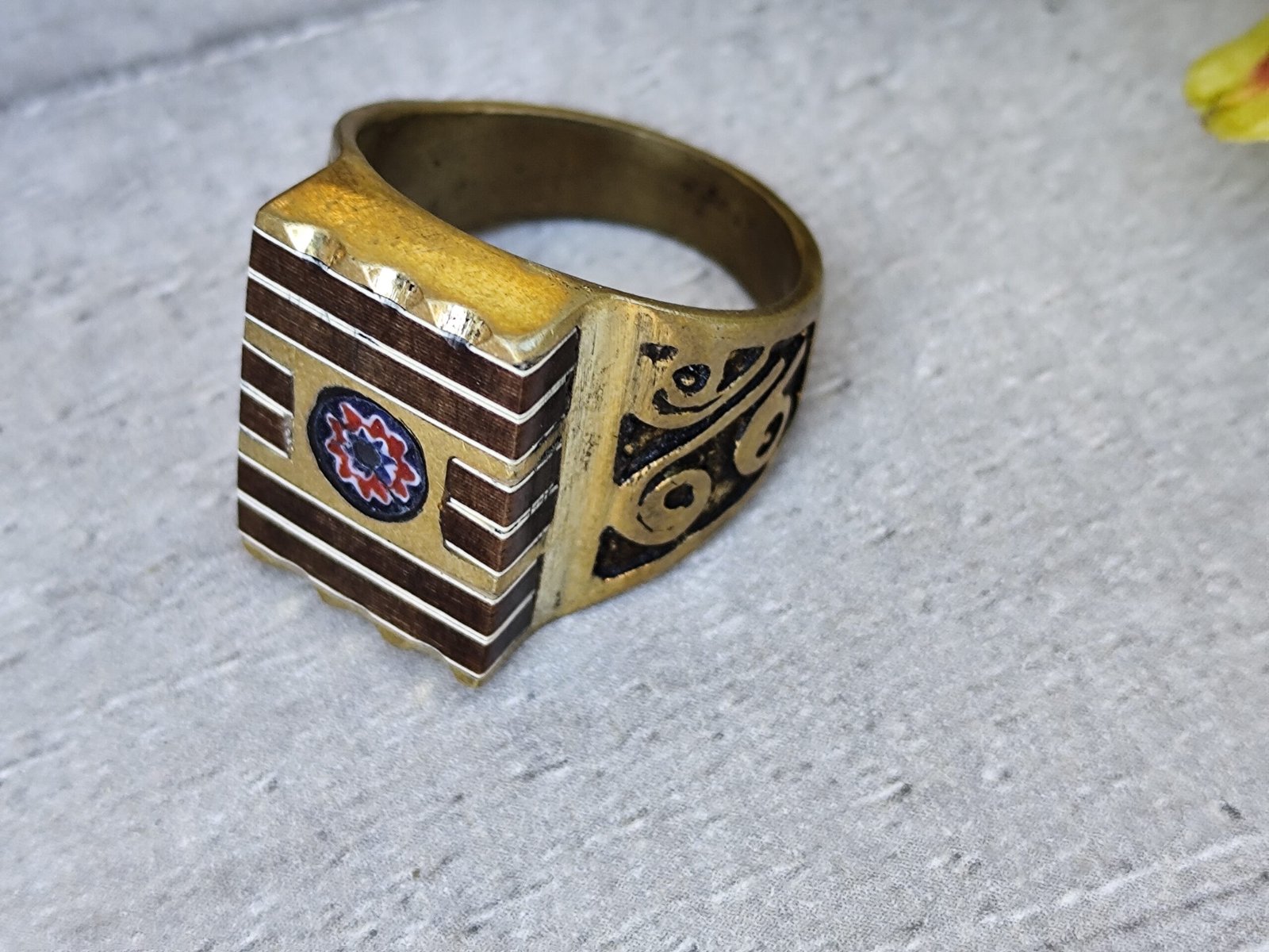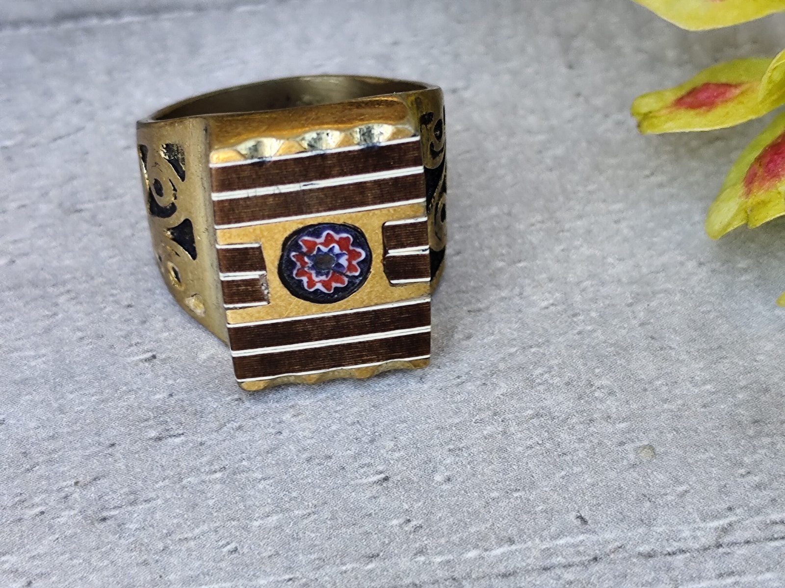 Bague marocaine millefiori – laiton & bois d’ébène – artisanat du Maroc.