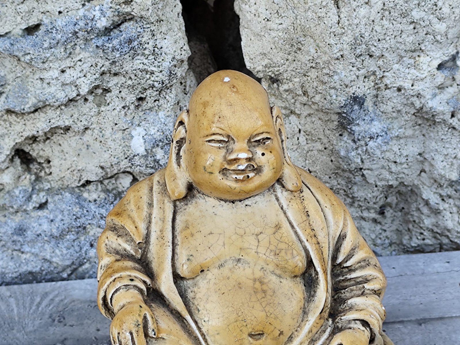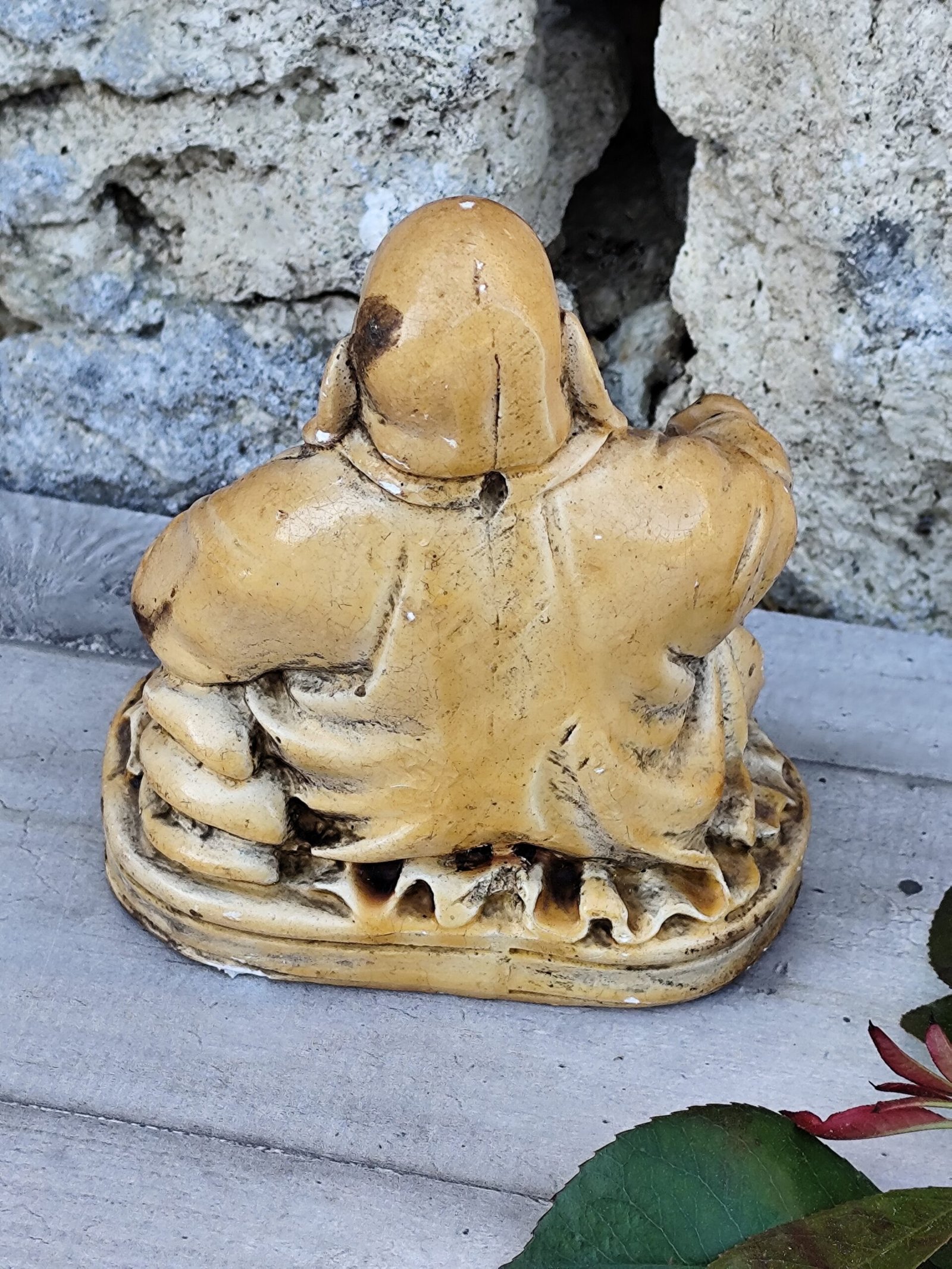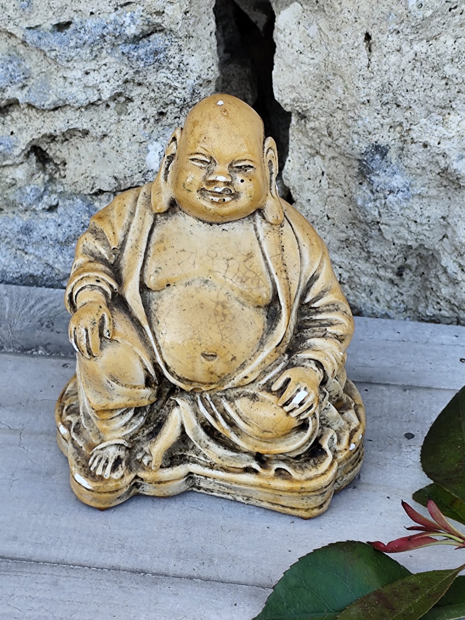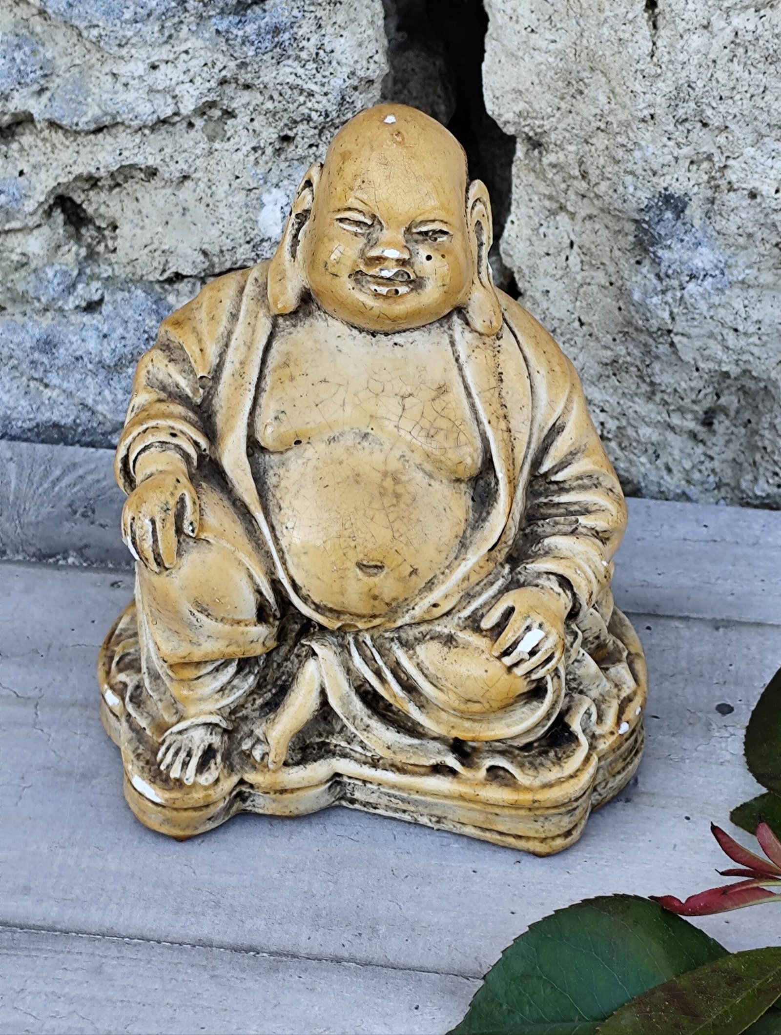 Bouddha Rieur – Petite Statue Vintage Patinée avec petits éclats.