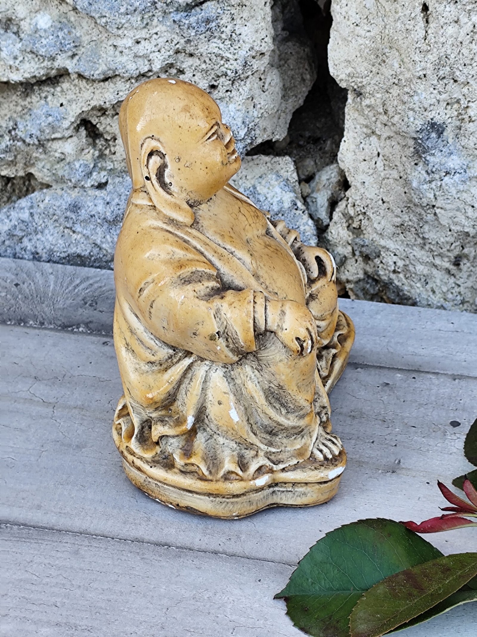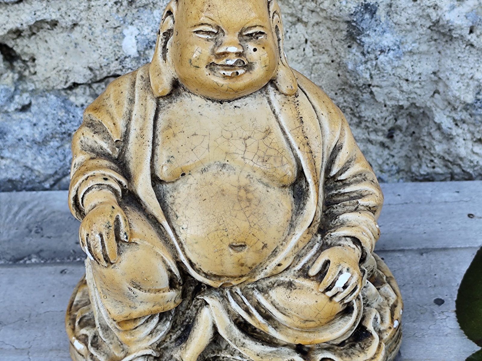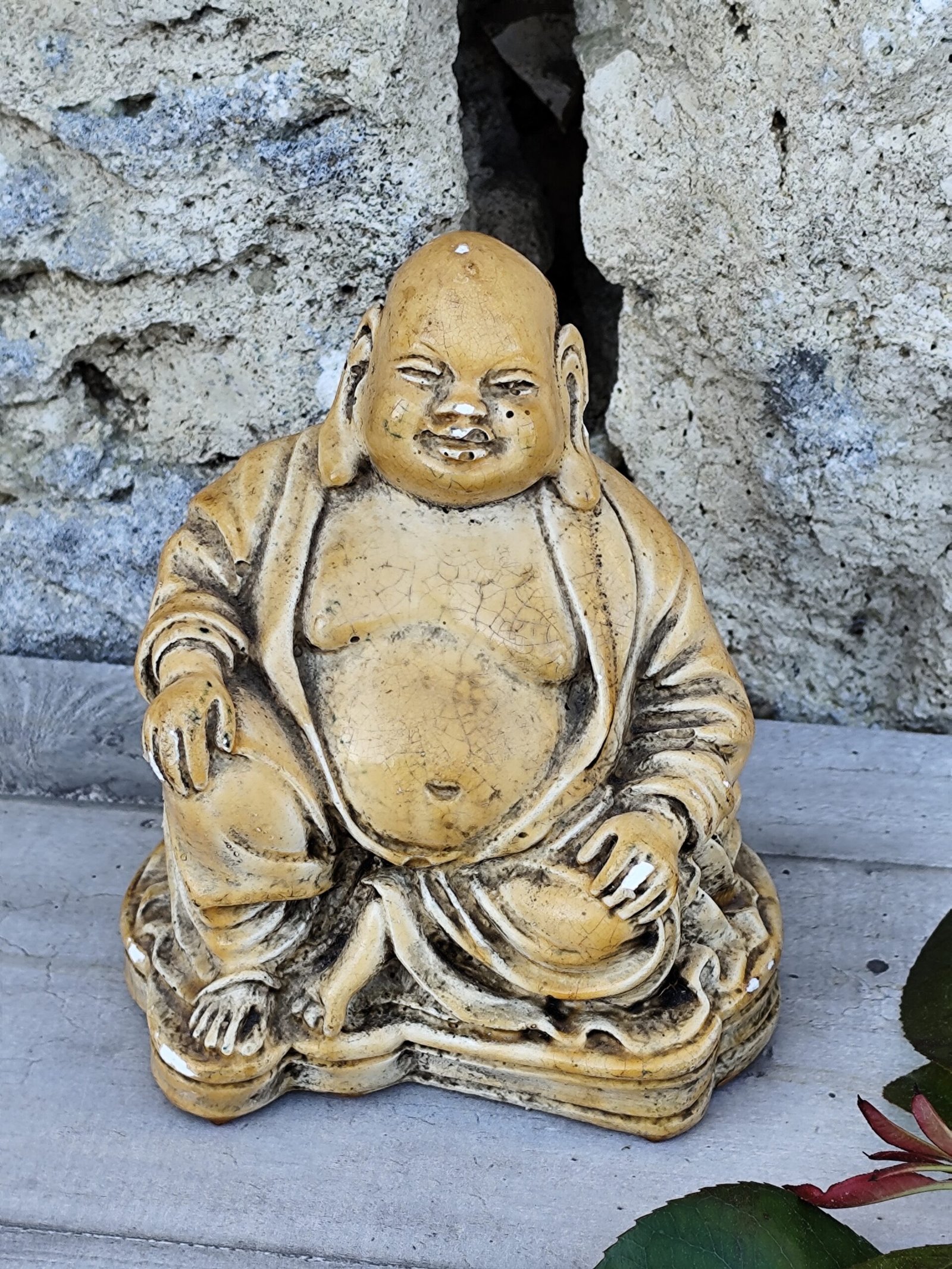 Bouddha Rieur – Petite Statue Vintage Patinée avec petits éclats.