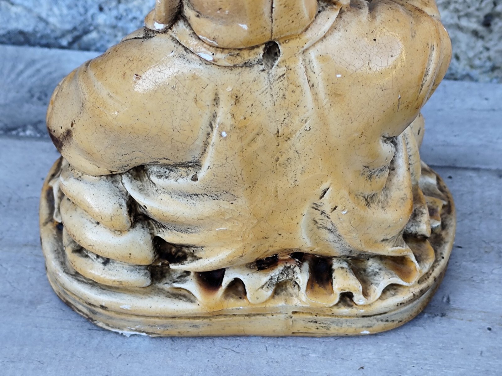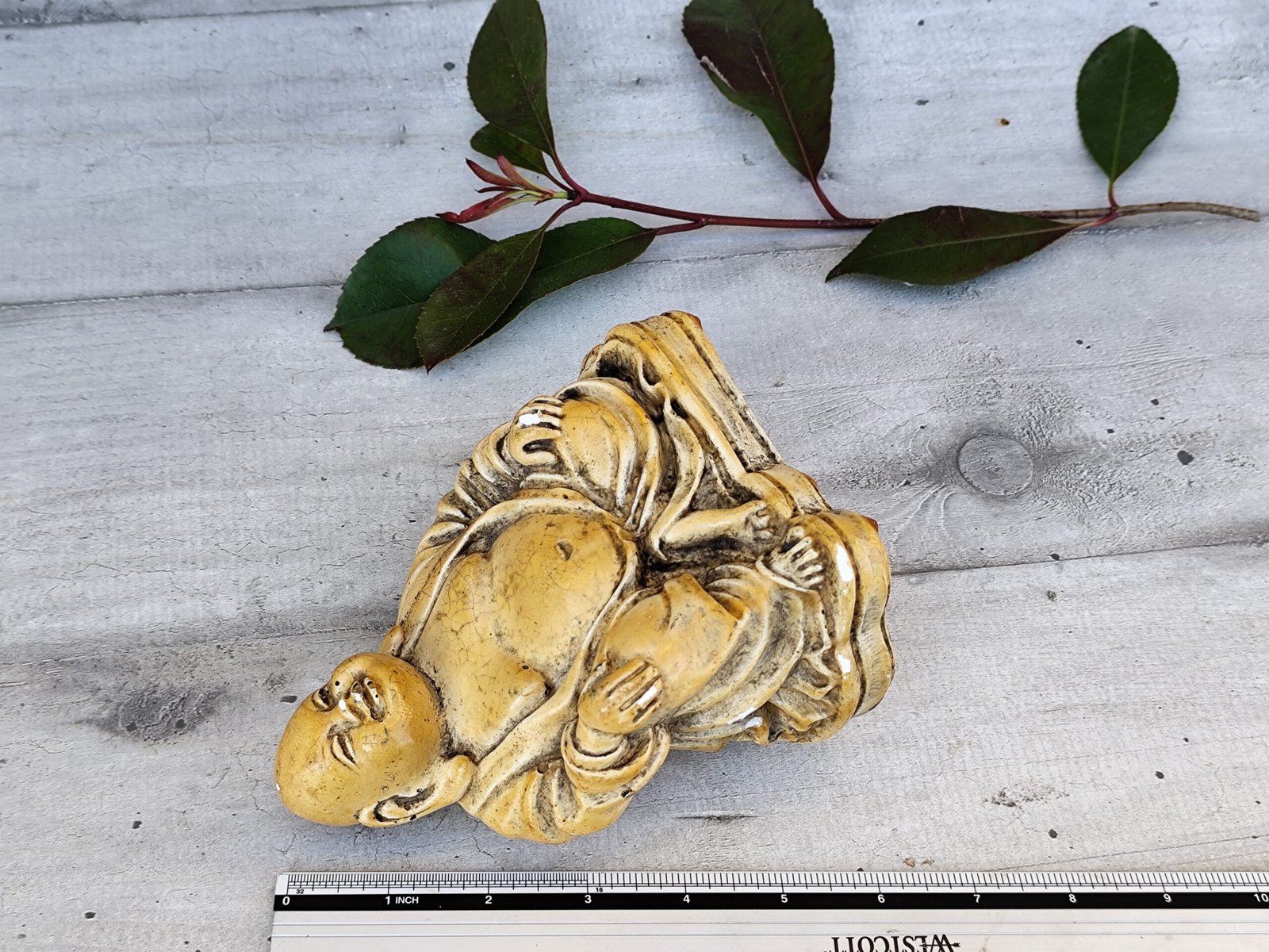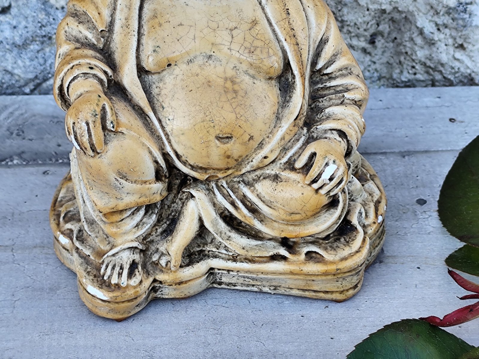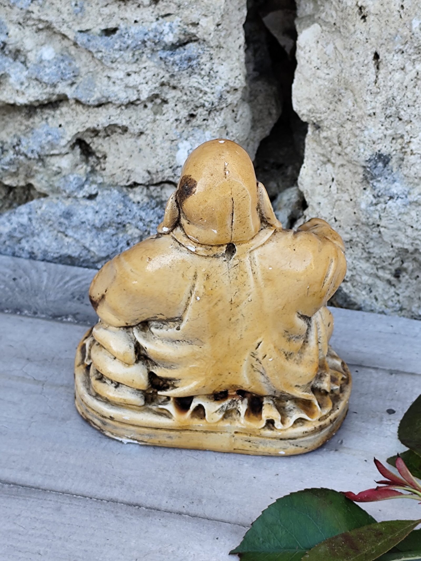Bouddha Rieur – Petite Statue Vintage Patinée avec petits éclats.