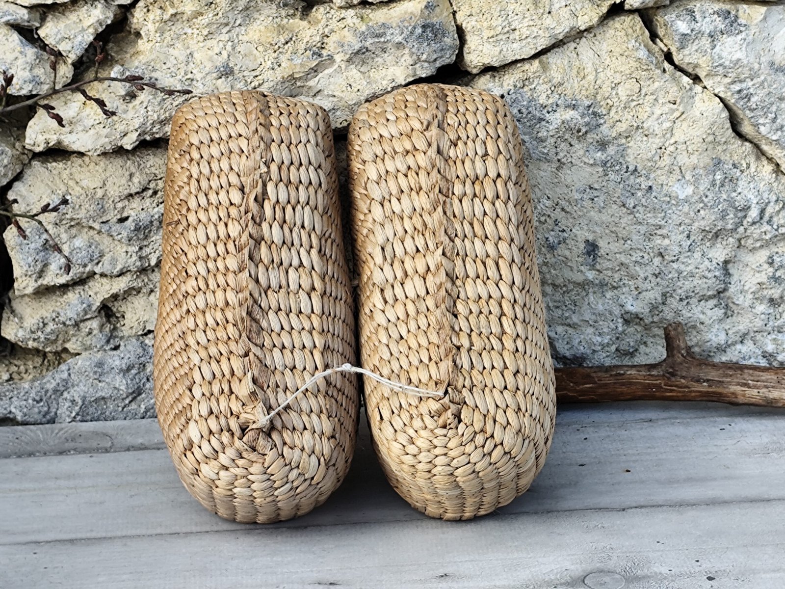 Ces chaussures artisanales en fibres naturelles racontent la simplicité des gestes anciens, la douceur des matières brutes et l’élégance discrète des objets du quotidien. Leur tressage serré, régulier et chaleureux évoque les ateliers ruraux, les chemins ensoleillés et la beauté des objets utiles façonnés avec patience.