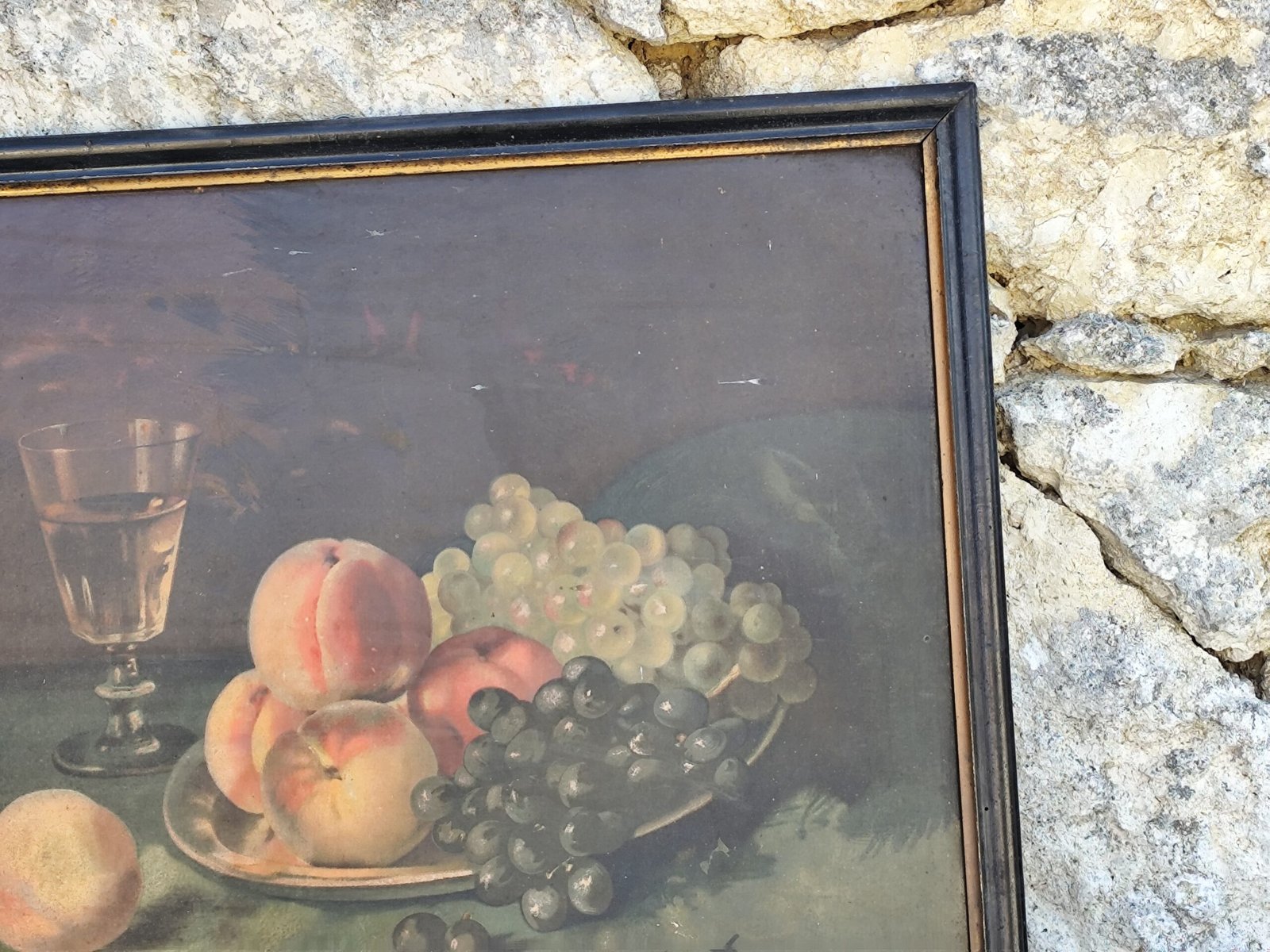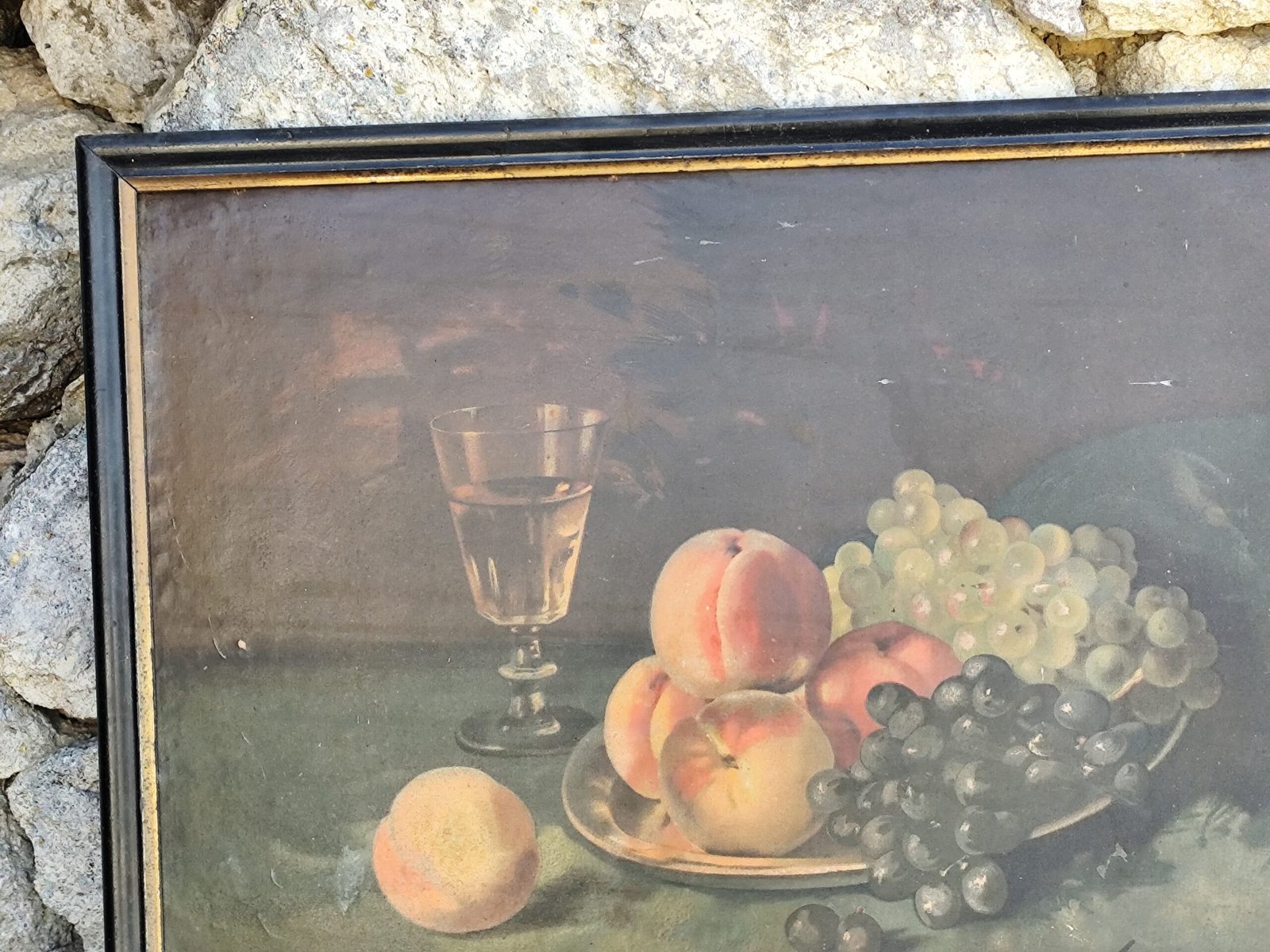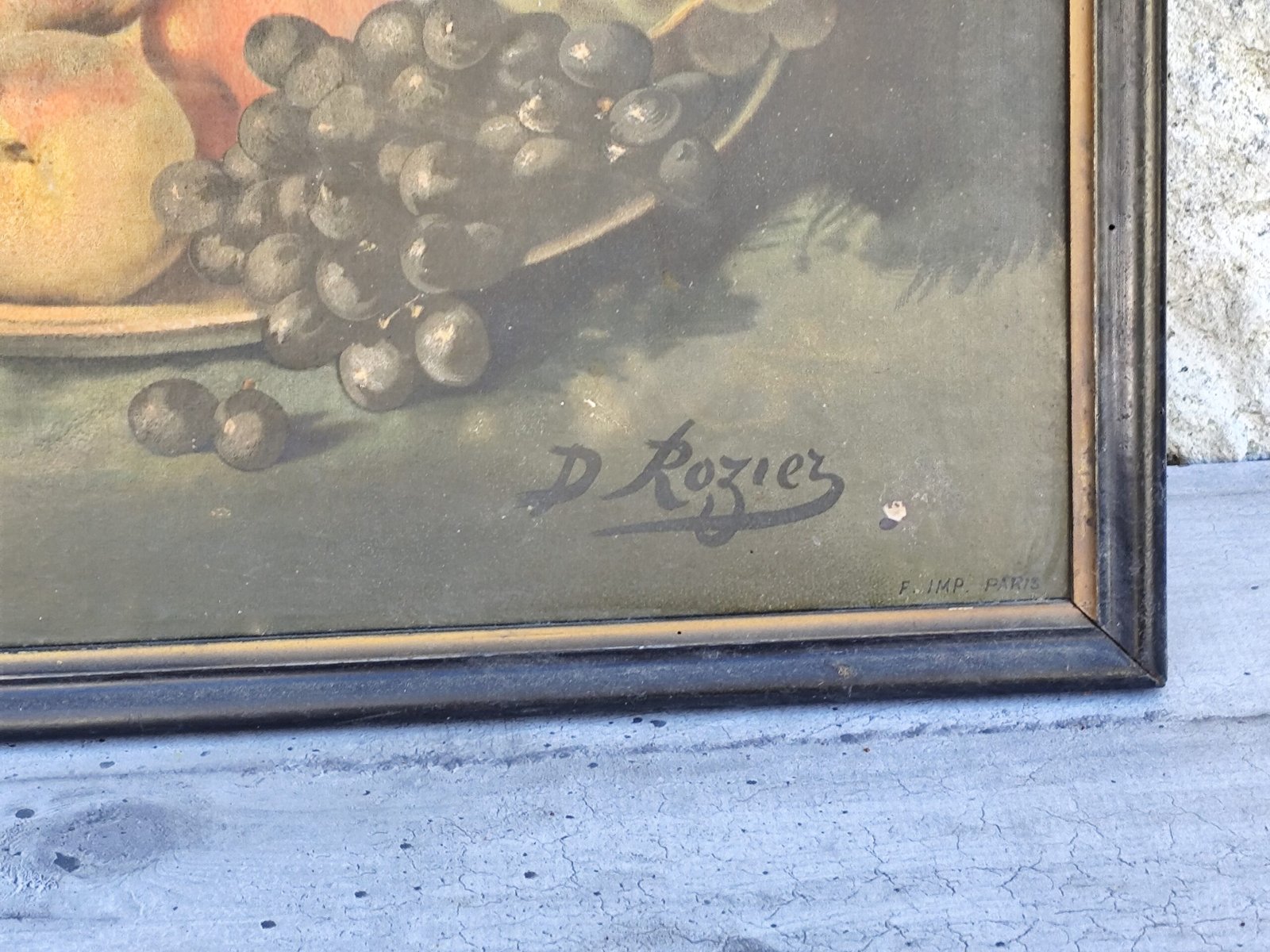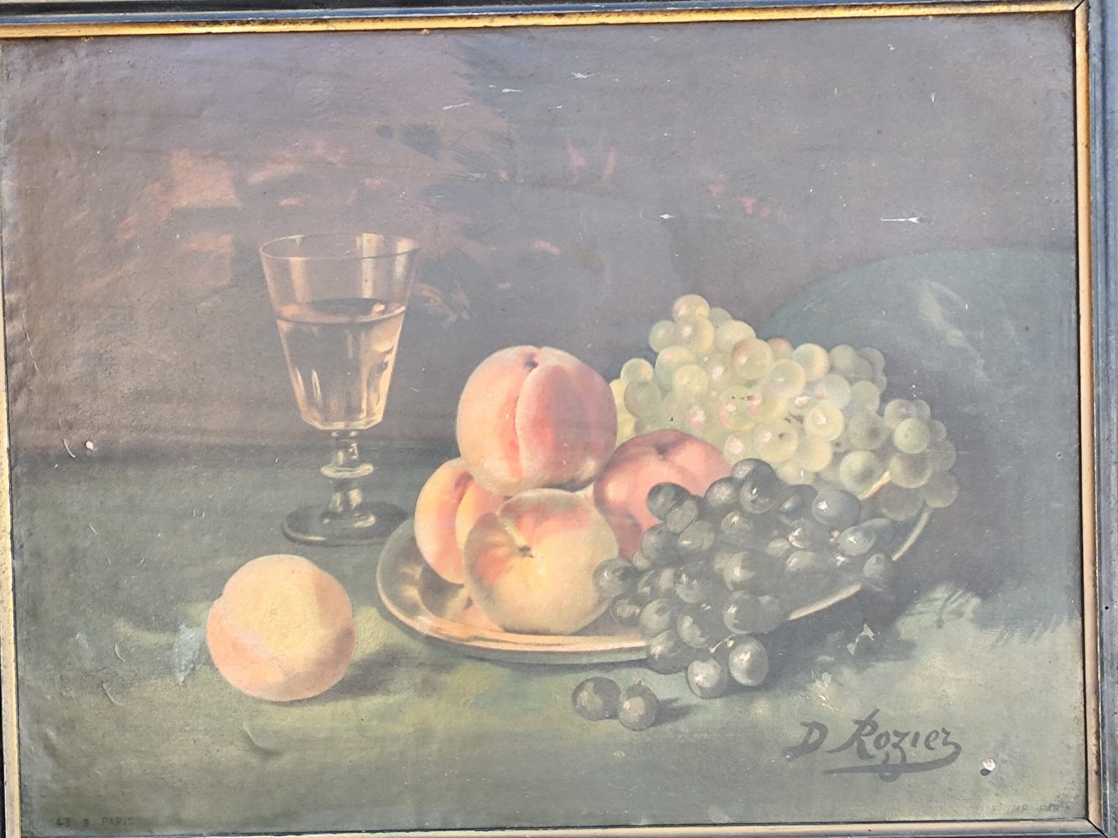 Soyez le premier à laisser votre avis sur “Chromo ancien nature morte – Fruits & verre – Signé D. Rozier – Encadrement vintage”