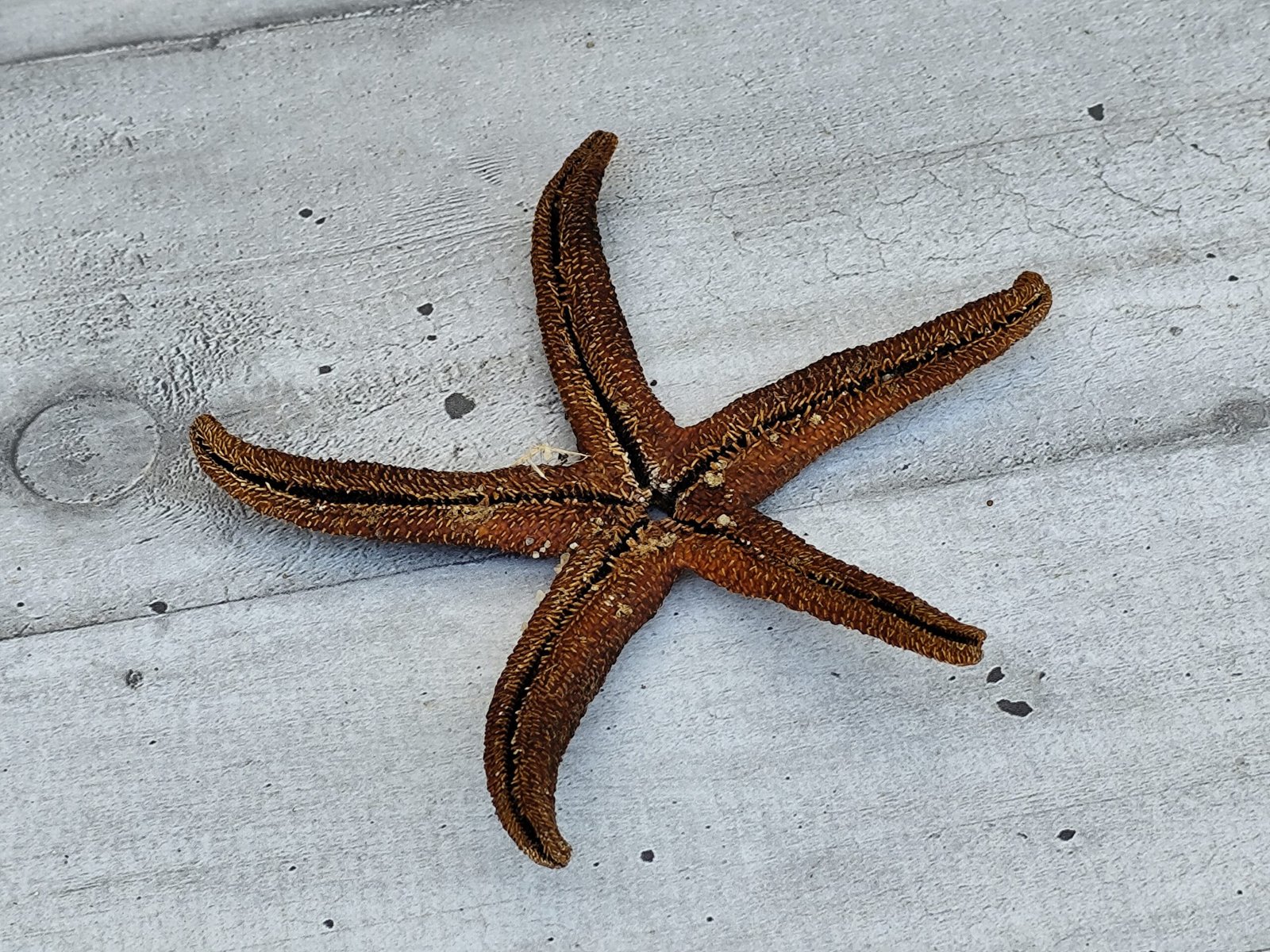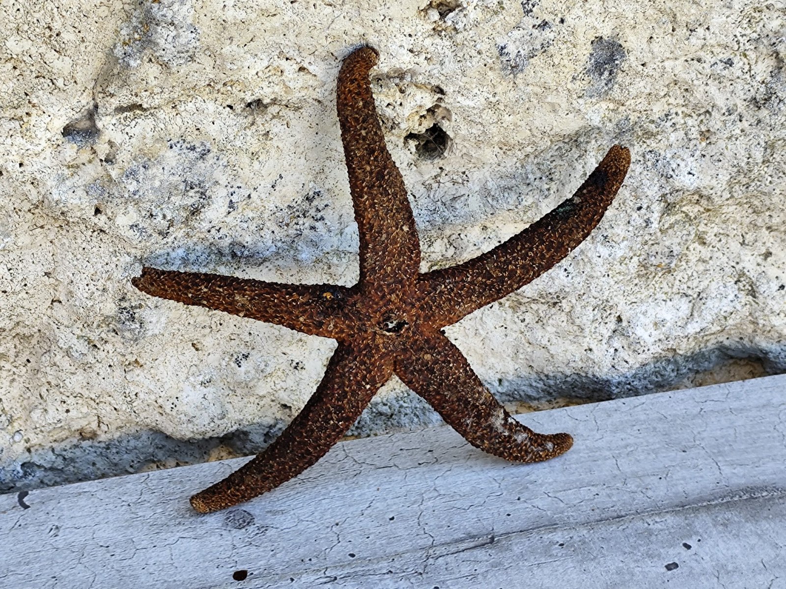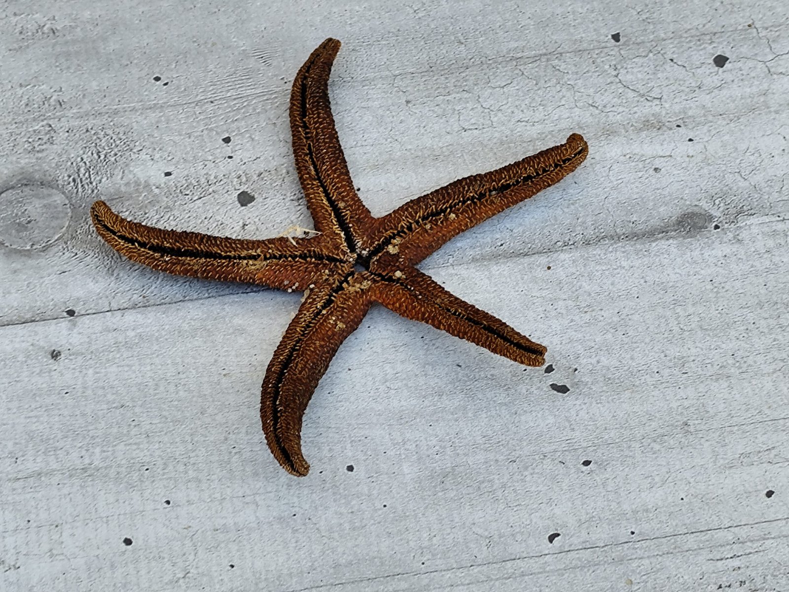 Une étoile de mer séchée, venue des rivages où la lumière glisse sur le sable.