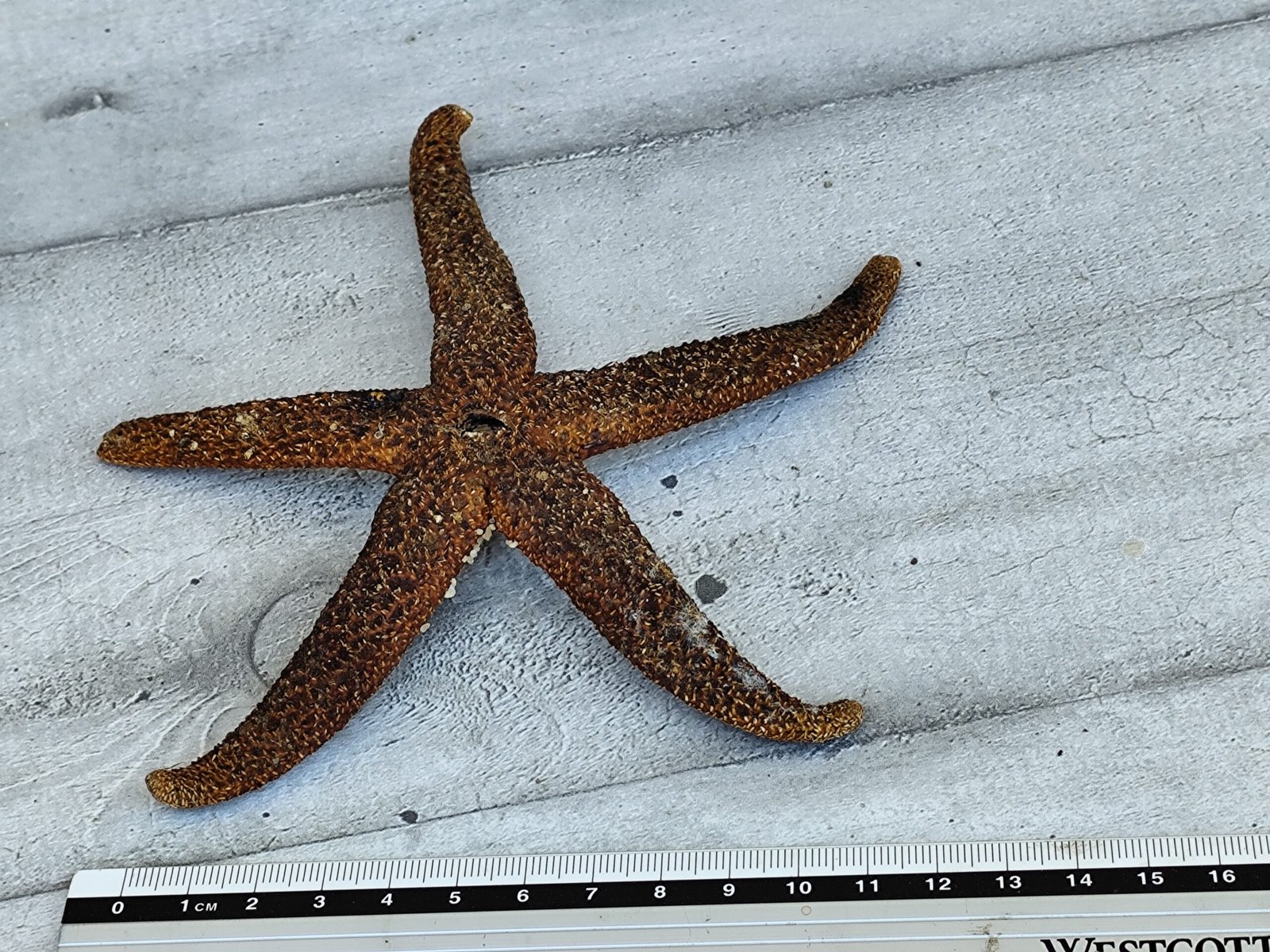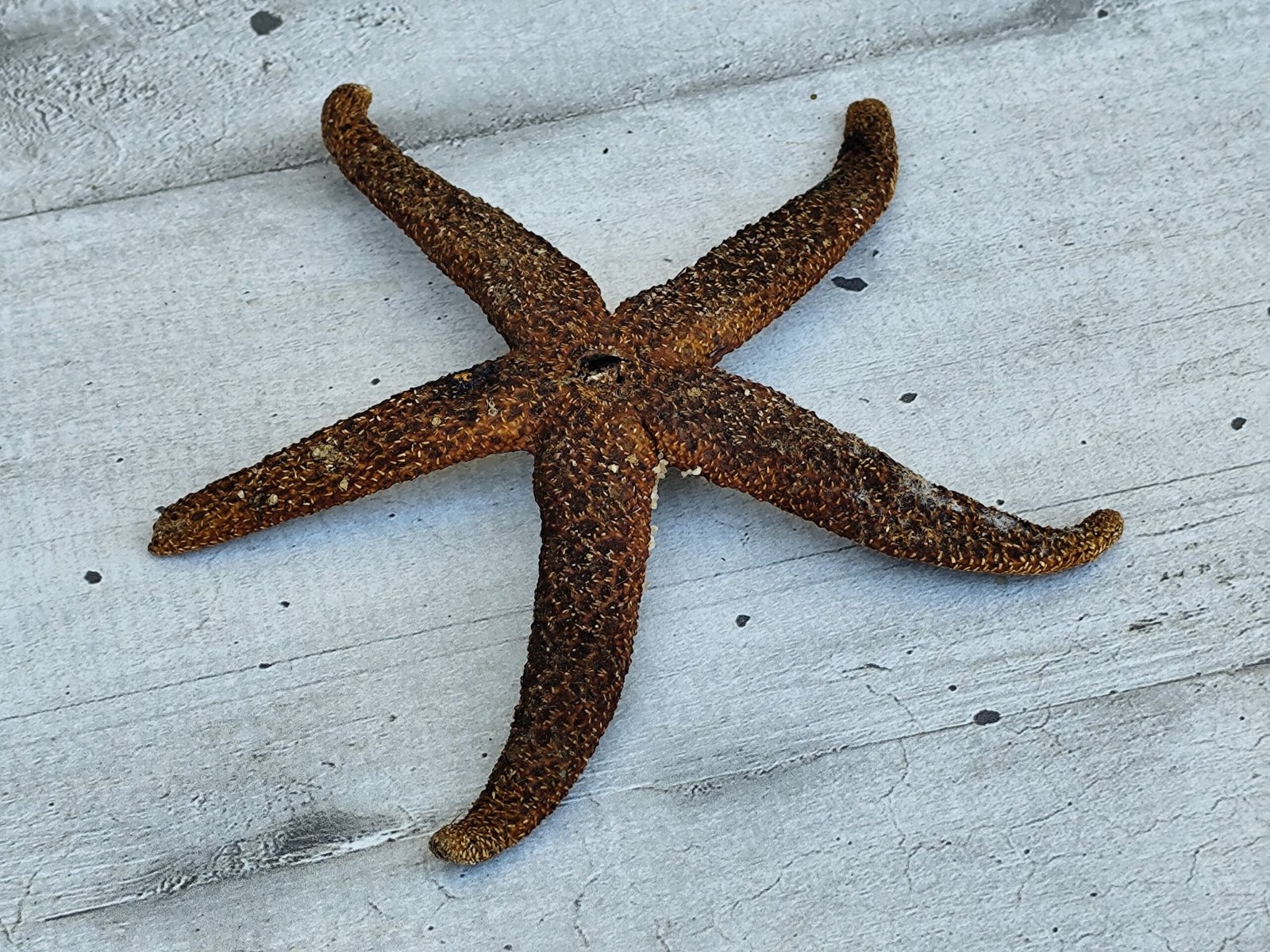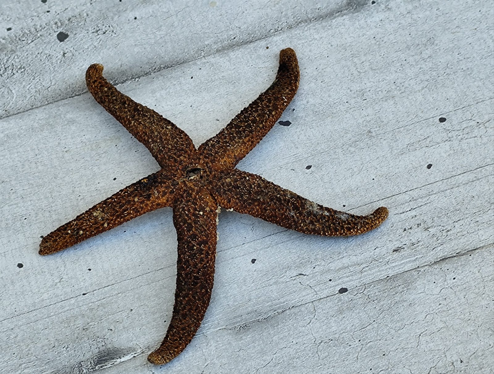 Une étoile de mer séchée, venue des rivages où la lumière glisse sur le sable.