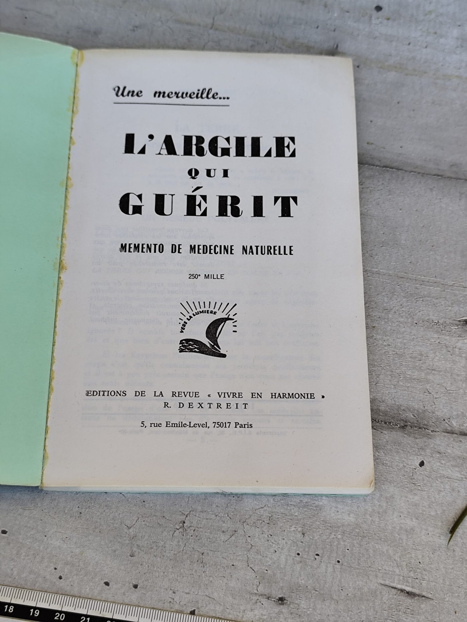 La couverture vert tendre, le cadre graphique d’époque et le sceau « Vers la Lumière » en font un objet à la fois documentaire et décoratif, idéal pour une bibliothèque bien‑être, un cabinet de naturopathie ou une collection de livres vintage.