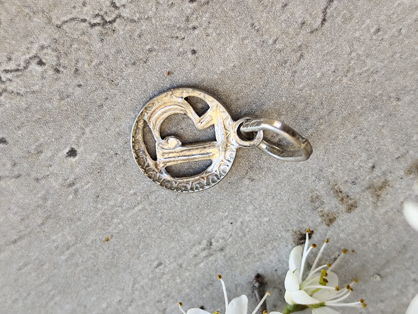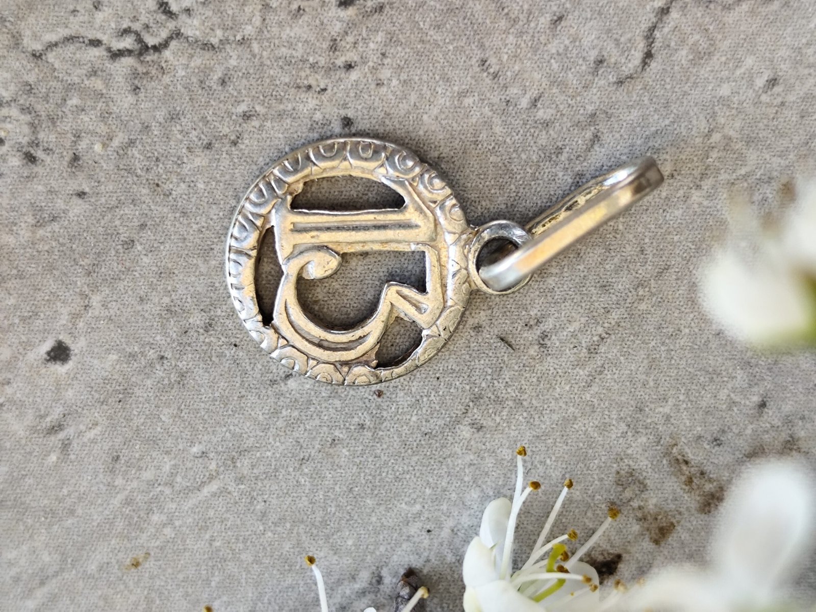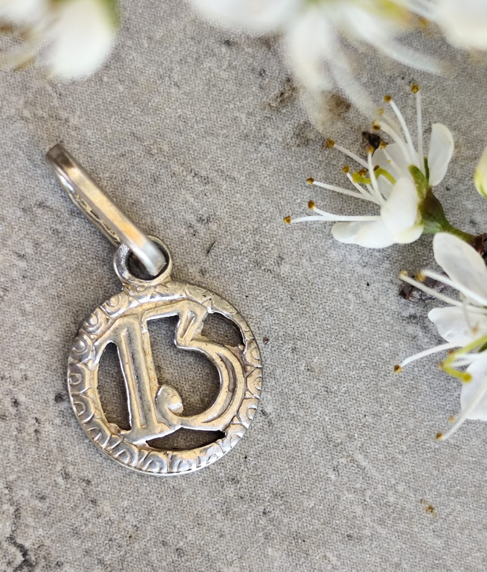 Un pendentif en argent au charme mystérieux, façonné dans une forme ronde et orné d’un chiffre 13 en relief. Sa bordure finement ciselée lui donne une allure ancienne, presque talismanique, comme un petit fragment d’histoire porté contre la peau.
