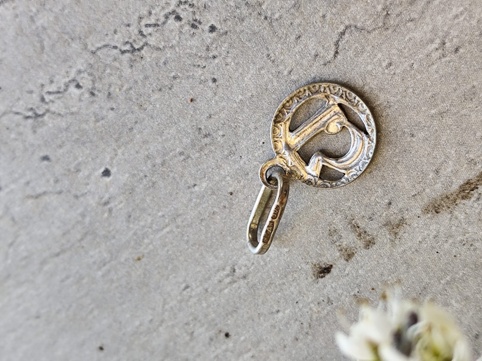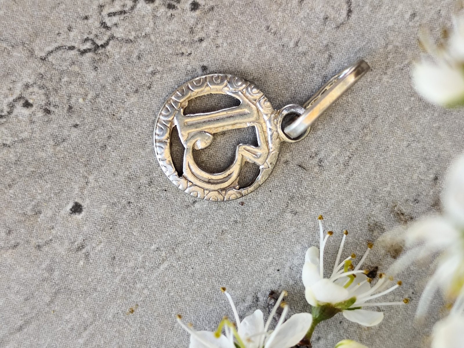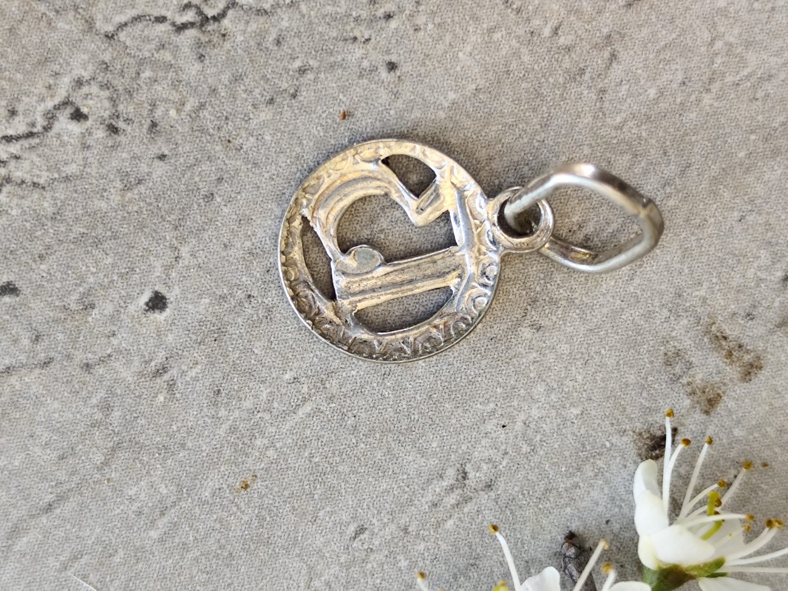 Un pendentif en argent au charme mystérieux, façonné dans une forme ronde et orné d’un chiffre 13 en relief. Sa bordure finement ciselée lui donne une allure ancienne, presque talismanique, comme un petit fragment d’histoire porté contre la peau.