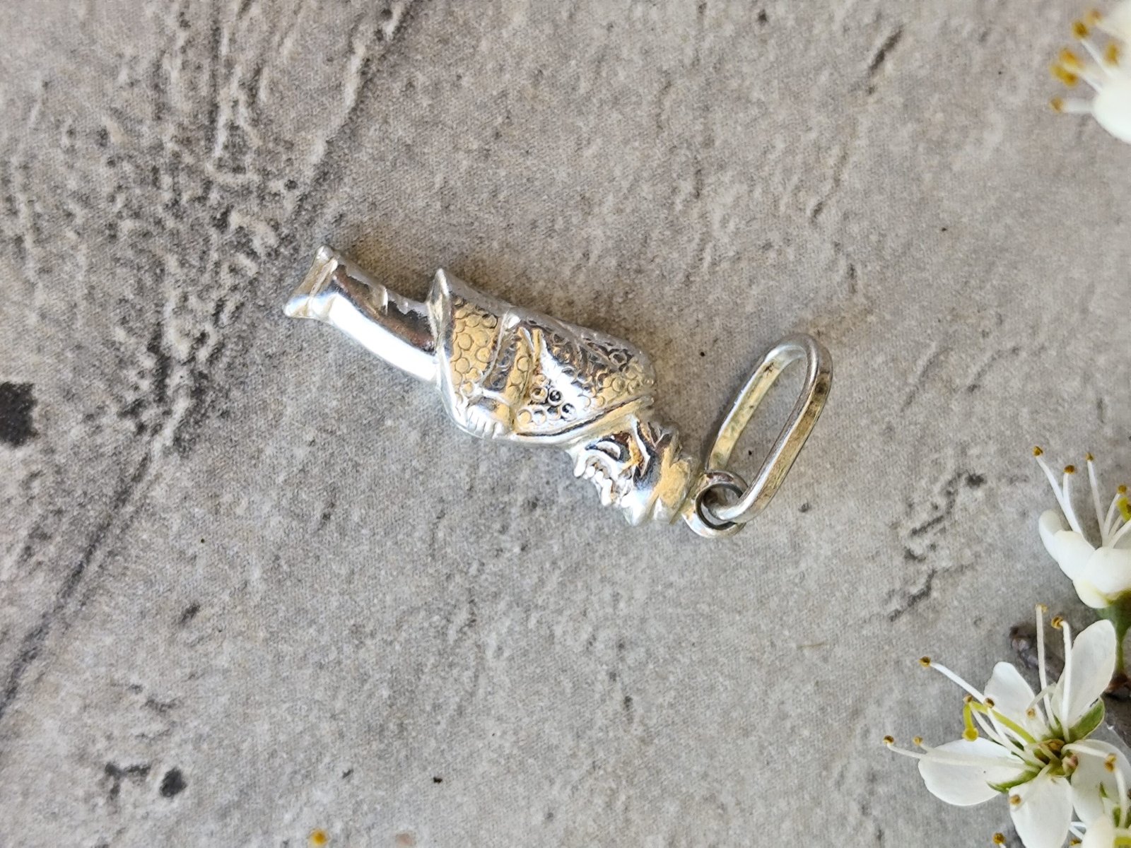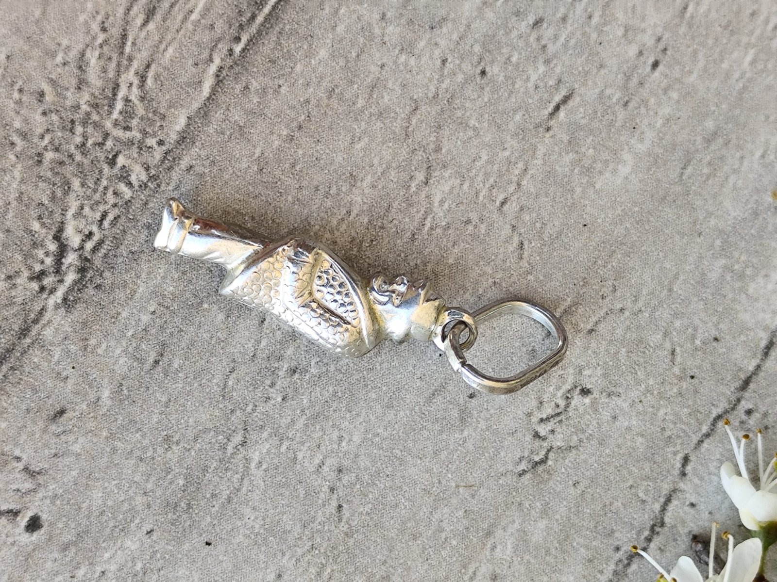 Pendentif gobbo bossu en argent vintage.