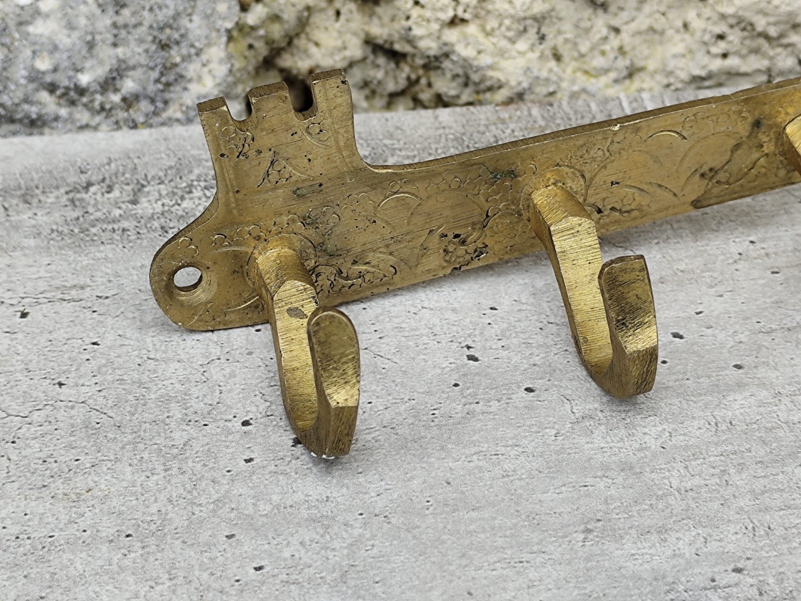 – Matière : Laiton travaillé, patine ancienne