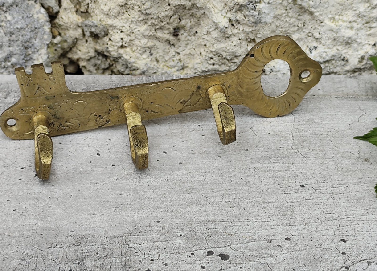 Porte‑clés mural marocain en laiton – Clé décorative artisanale.