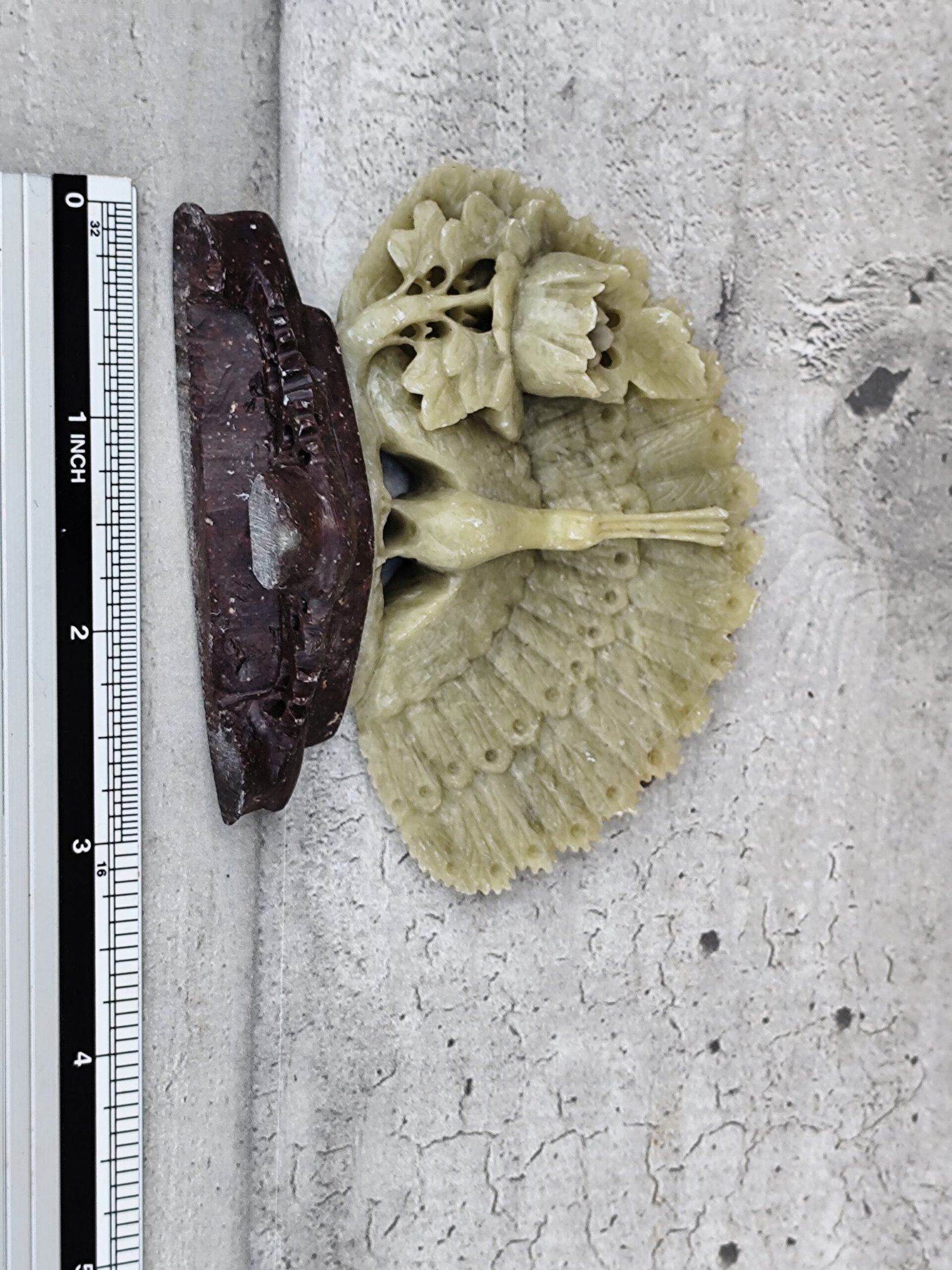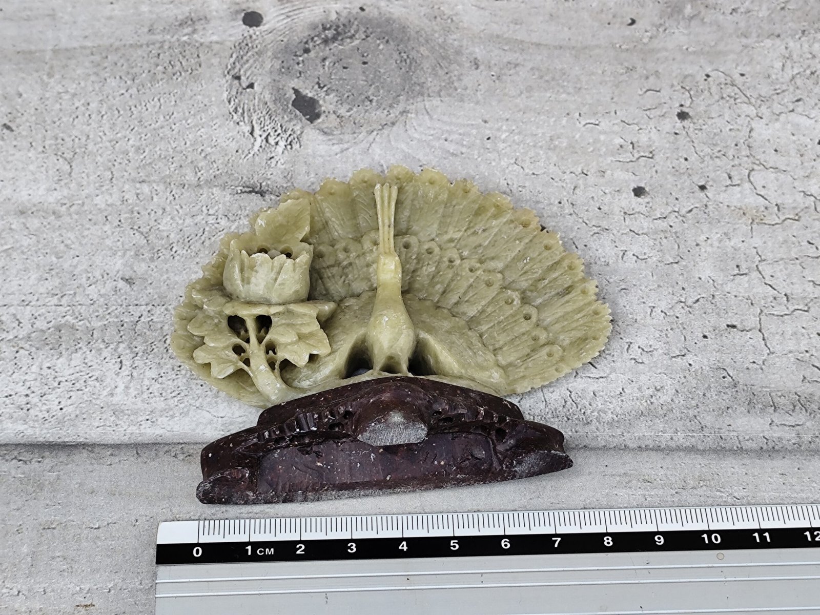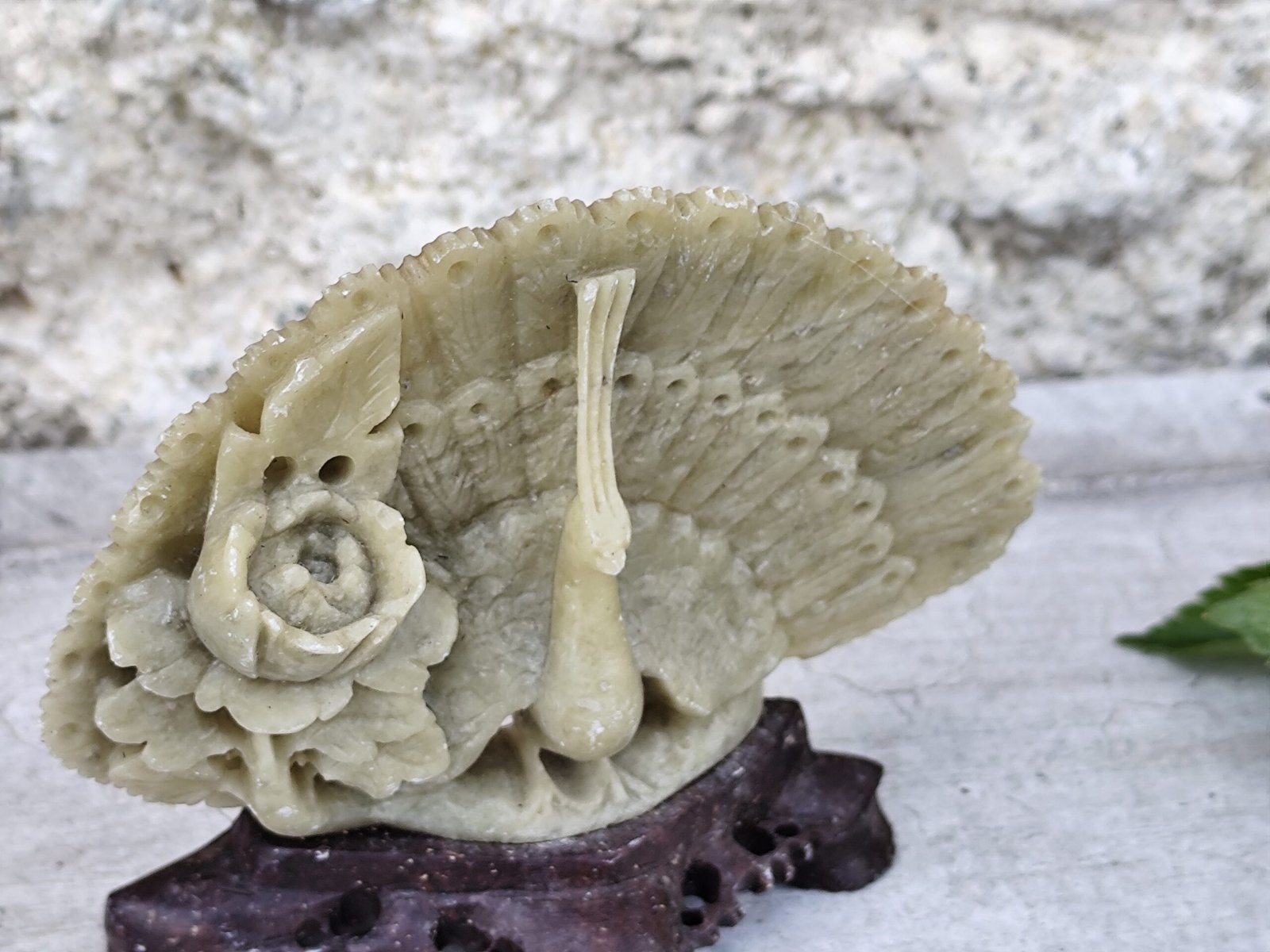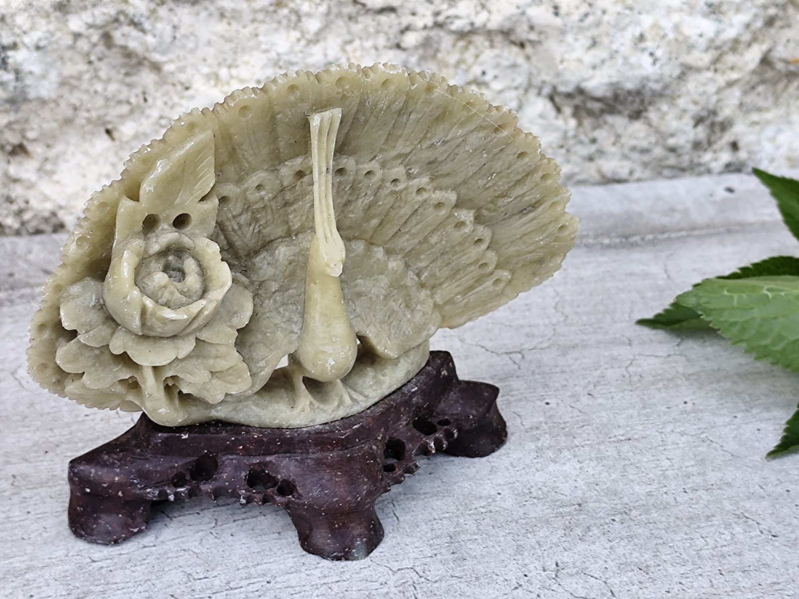 Statue paon en stéatite sculptée – artisanat d’Asie.