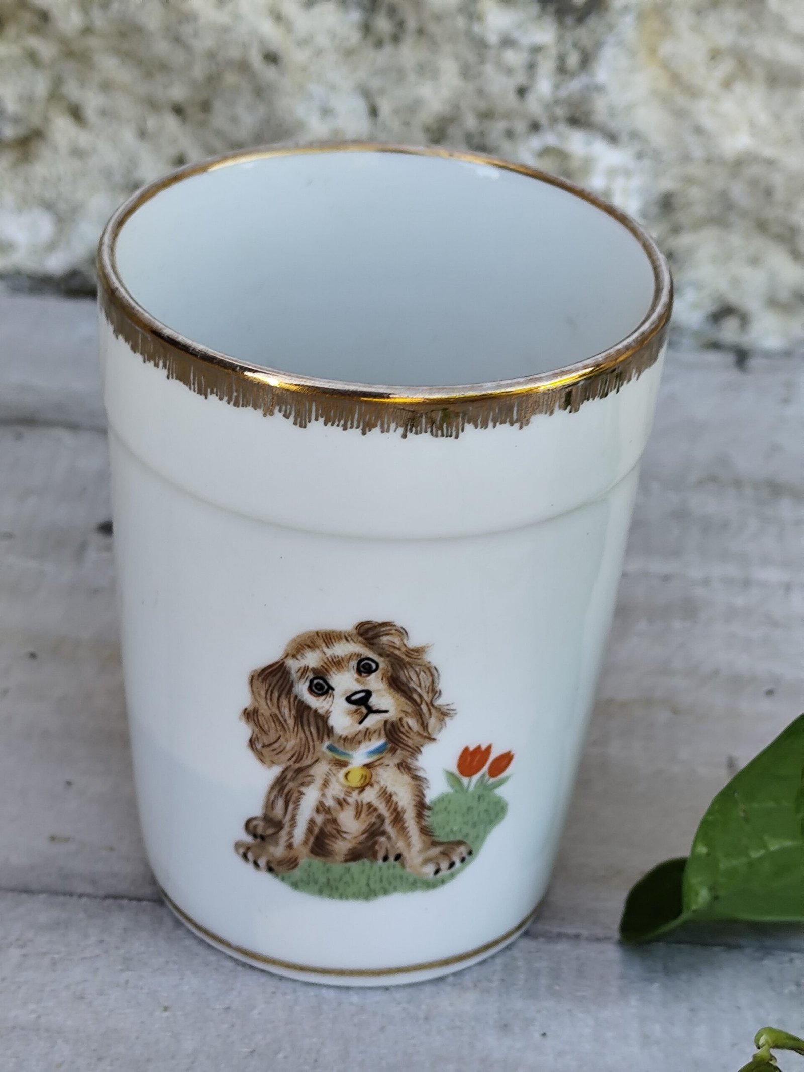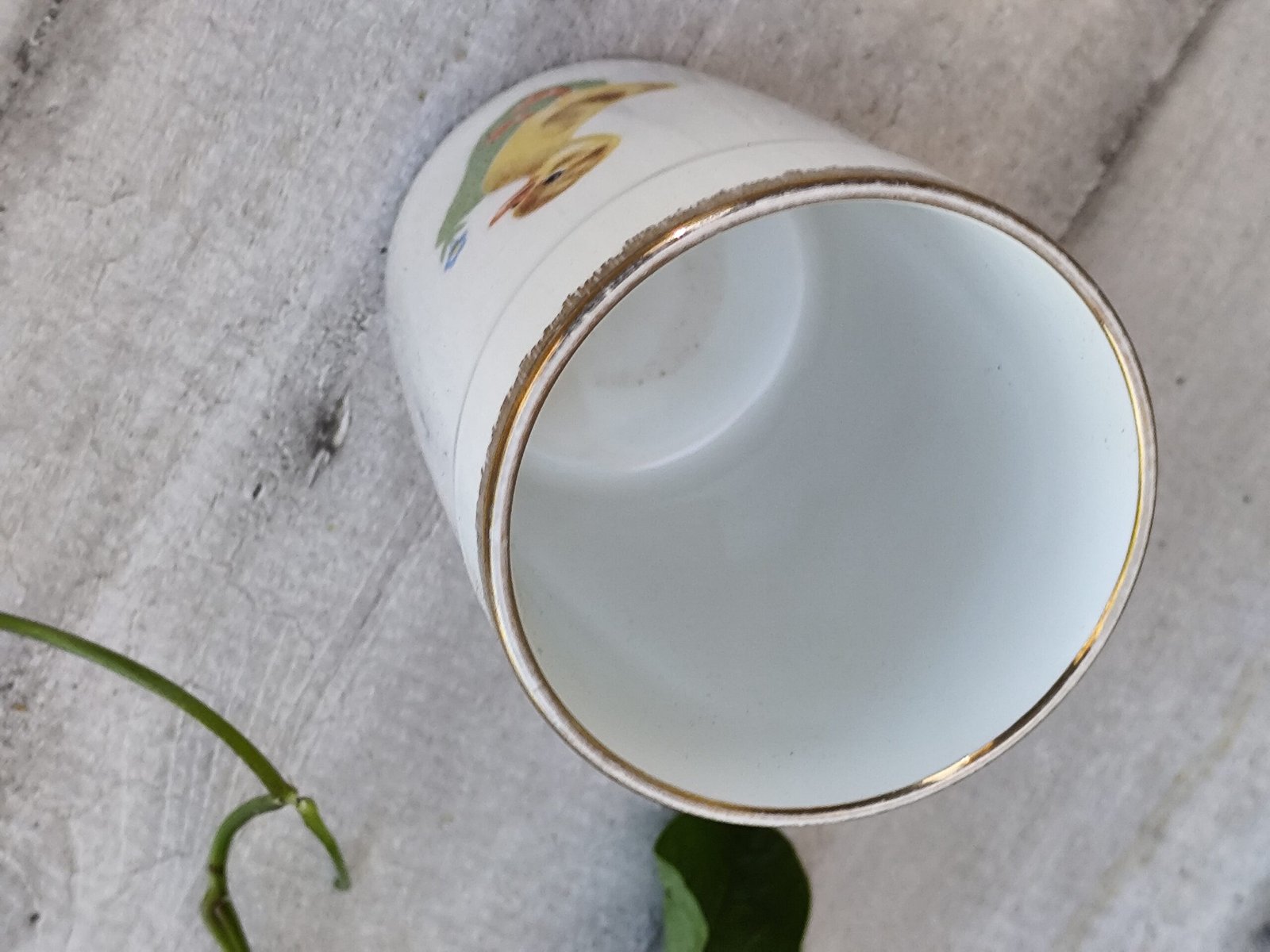 Tasse vintage illustrée – Porcelaine d’Art P. Dussault – Animaux & fleurs – Collection poétique.