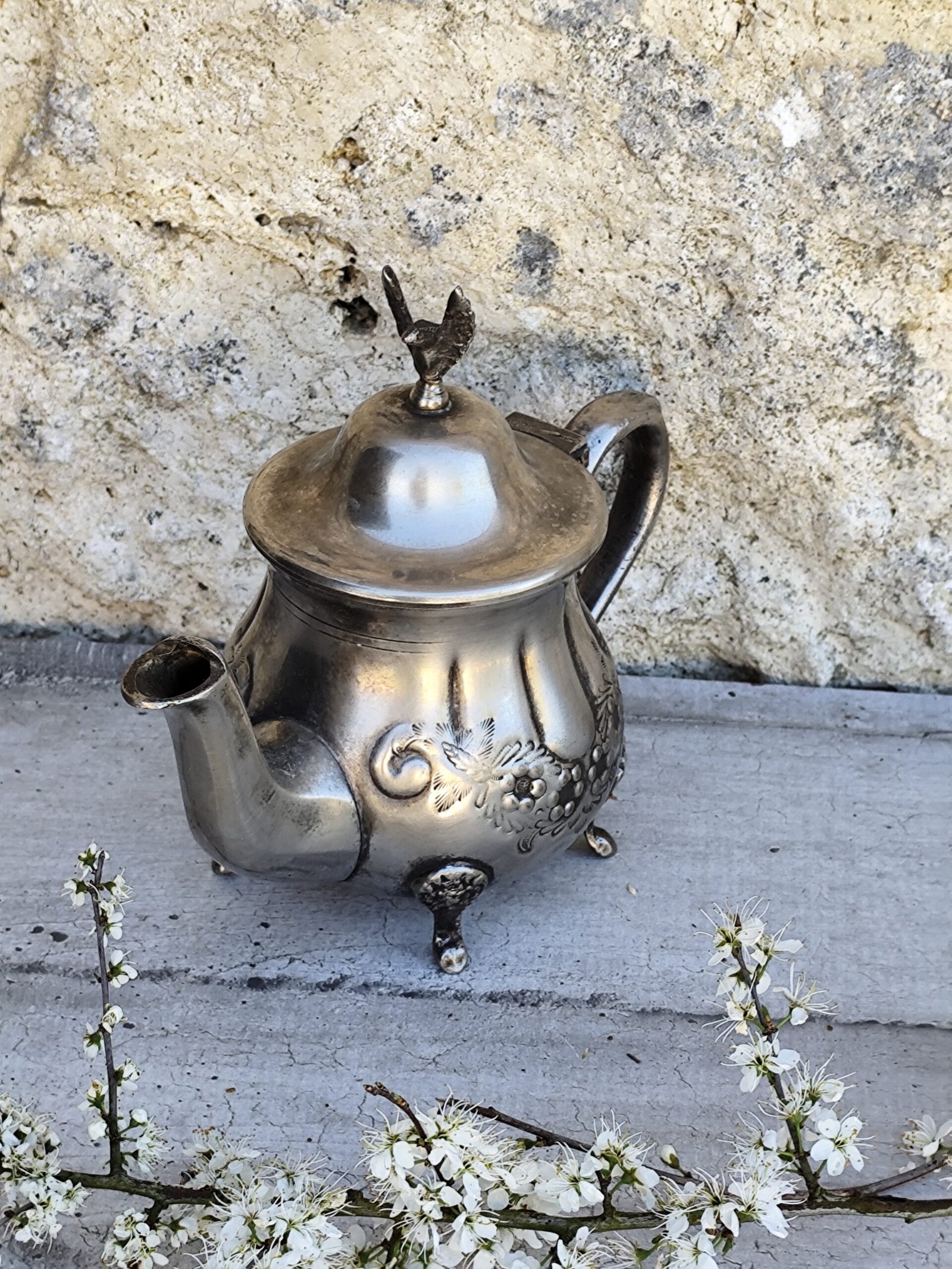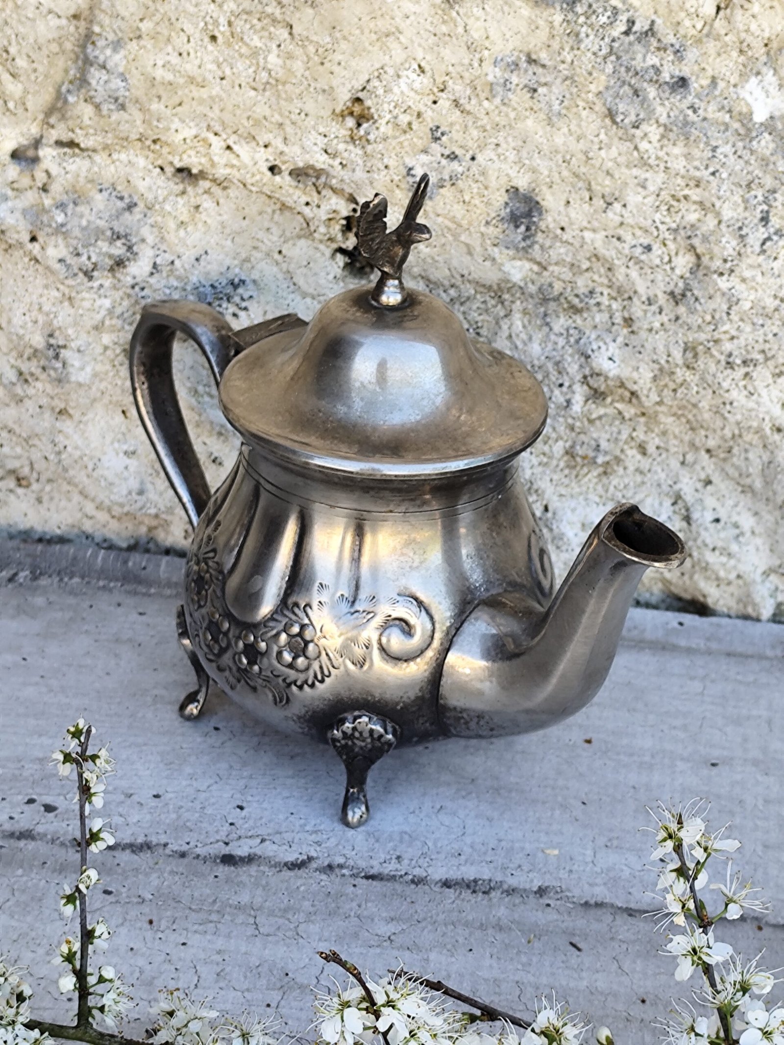 Théière ancienne en métal argenté – Aigle impérial sculpté – Poinçon d’orfèvre – Art déco / XIXe – Objet de collection.