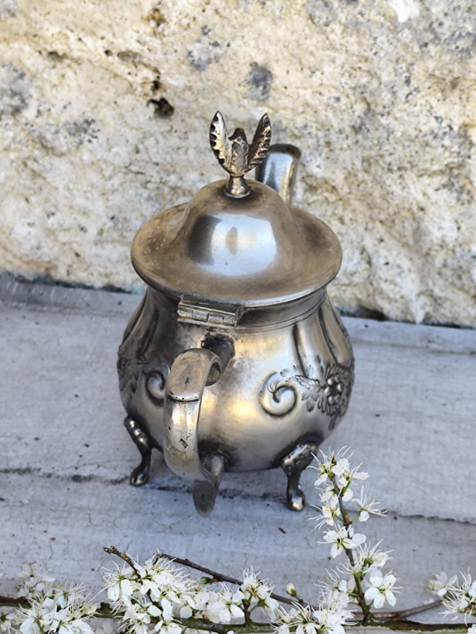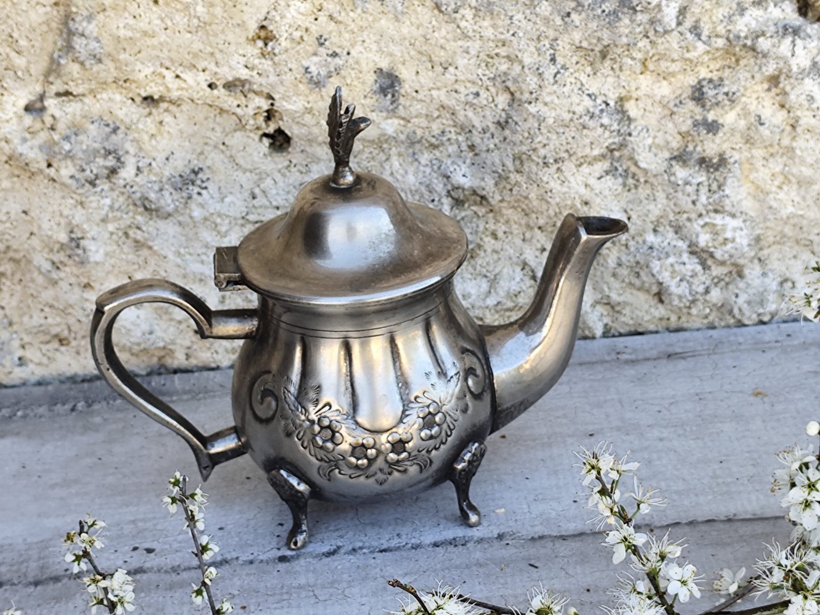 Son décor floral finement ciselé, ses trois pieds élégants et son allure impériale en font un objet de collection unique, idéal pour sublimer un intérieur, enrichir un autel spirituel ou offrir une touche vintage raffinée à une décoration poétique.