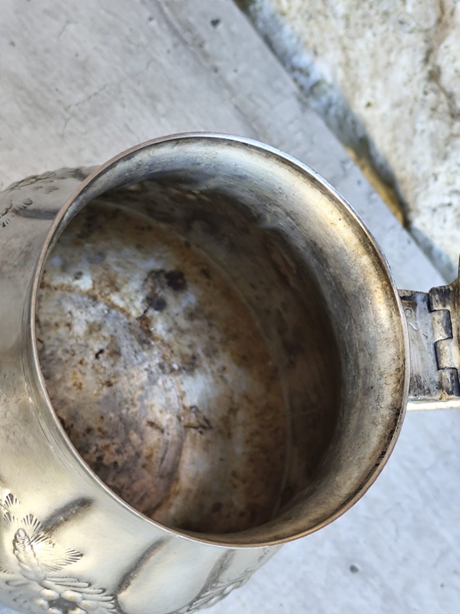 Laissez-vous séduire par cette théière ancienne en métal argenté, délicatement travaillée et ornée d’un aigle majestueux sur son couvercle. Une pièce rare, empreinte d’histoire, qui porte encore son poinçon d’orfèvre, garant d’un savoir‑faire authentique.